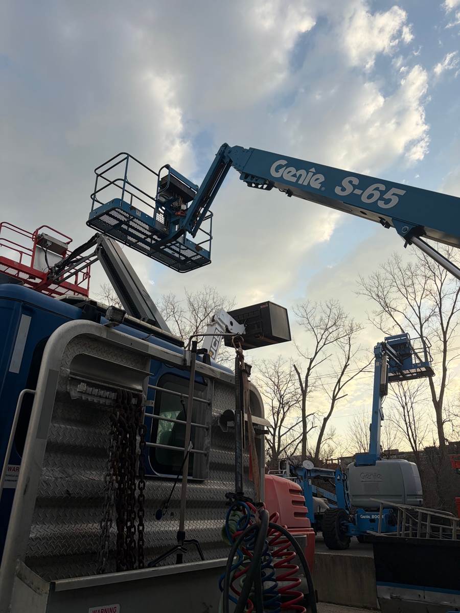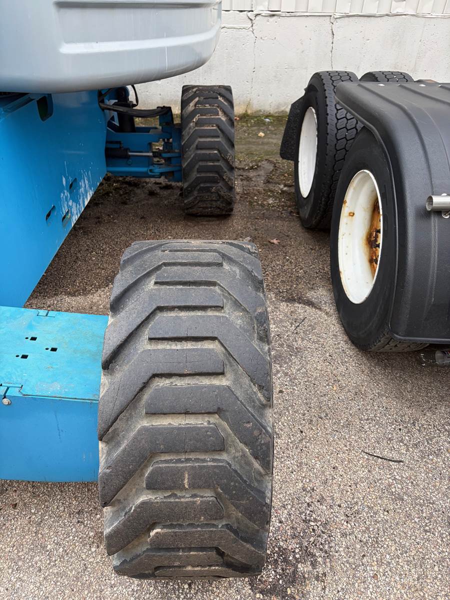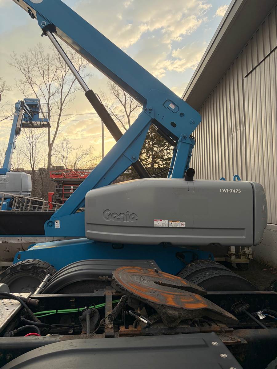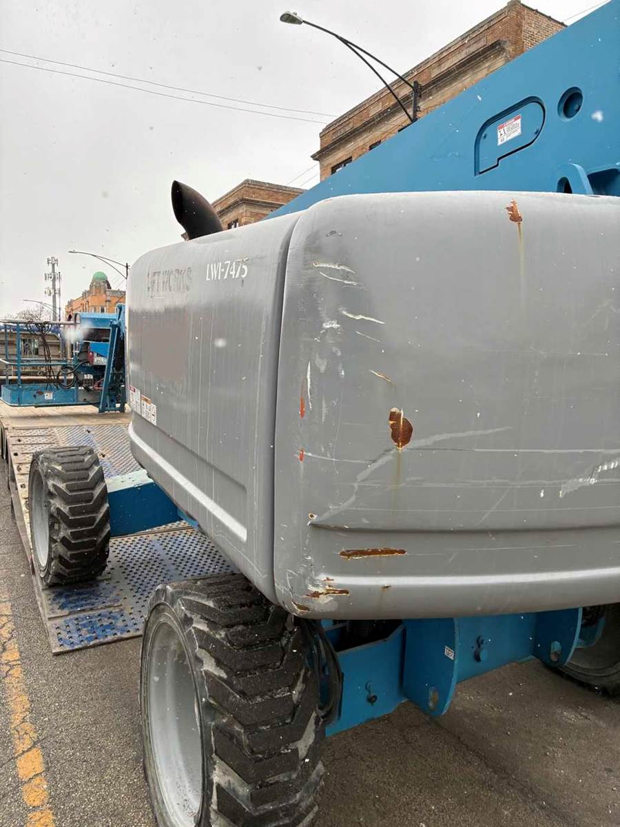 2013 Genie S65 telescopic boom lift located FOB Chicago, Illinois (USA). Powered by a reliable Deutz diesel engine, this 4WD unit has 5,570 operating hours and delivers a 71 ft working height and 65 ft platform height. Equipped with foam-filled tires for enhanced durability and reduced downtime on rough job sites.