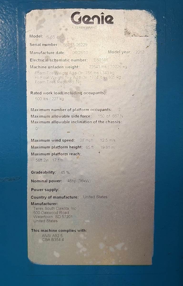 2013 Genie S-65 Telescopic Boom Lift