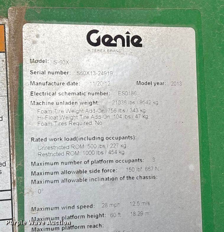 2013 Genie S60 Boom Lift