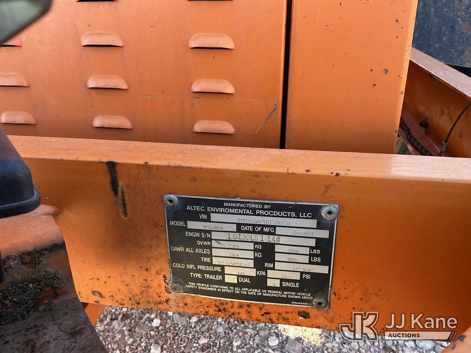 GM 3.0L, s/n 3.0L51144, , 2013 Altec WC126A Chipper (12in Drum), s/n 5WDS11017DC200710, 4-cyl gas, True Mileage Unknown (No Title) (Per Seller: Will Not Start, Condition Unknown) (Minor Body Damage, Right Side Tire Flat) NOTE: This unit is being sold AS IS/WHERE IS via Timed Auction and is located in Stanton, TX. For more information & removal arrangements please contact Jim Wilmes @ 432-697-8697. (Buyer is responsible for removal. Assistance by consignor or JJ Kane Auctions is not assured.)