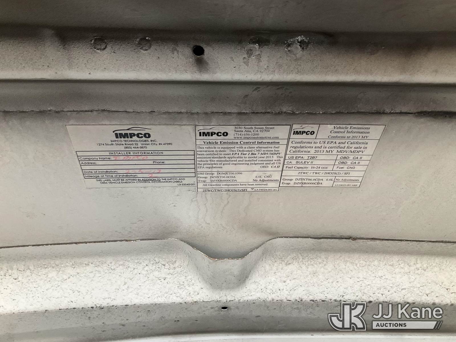 2013 GMC Savana G2500 Cargo Van, 6.0L V8 6-Speed Automatic, RWD, CNG Only, A/C, (66,730 miles) (Runs On CNG Only) (Runs & Moves) (Body Damage) This is a Titled Item NOTE: This unit is being sold AS IS/WHERE IS via Timed Auction and is located in Shrewsbury, MA. Inspection & preview days for this unit are the 2 business days prior to the first day of items closing for this auction, item is located at 11 Fortune Blvd Shrewsbury, MA 01545 and hours of operations are 8a-4p. For pre-sale questions, please contact Rob Gifford @ (508) 864-4126. Sales Tax Collected Based on Residency (Buyer is responsible for removal. Assistance by consignor or JJ Kane Auctioneers is not assured.)