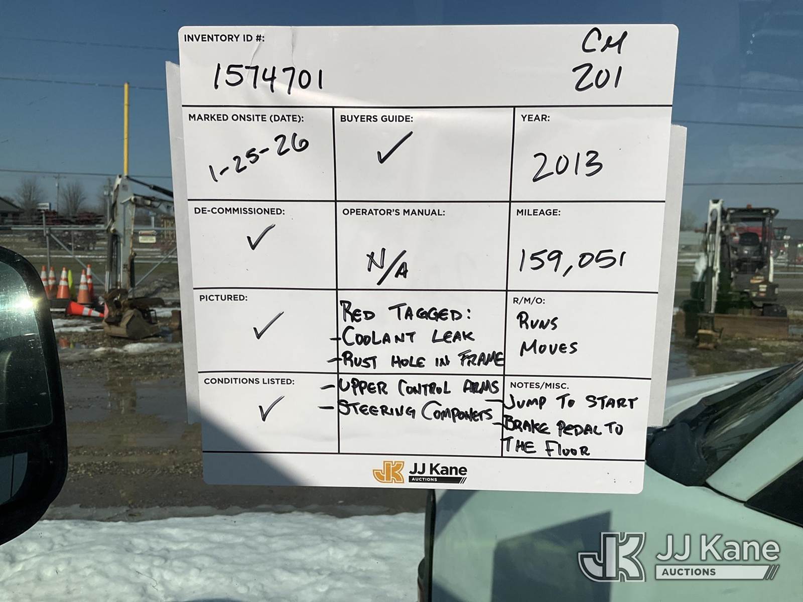 2013 GMC Savana G3500 Cargo Van, 6.0L V8 OHV 16V FFV RWD, Gas, 6-Speed Automatic, A/C, (159,051 miles) (Runs, Moves)( Jump To Start, Brake Pedal Goes to Floor Red Tagged: Coolant Leak, Upper Control Arms, Hole In Frame, Steering Components) (Reads 14,403 hours) This is a Titled Item NOTE: This unit is being sold AS IS/WHERE IS via Timed Auction and is located in Charlotte, MI. Inspection & preview days for this unit are the 2 business days prior to the first day of items closing for this auction, item is located at 750 Island Hwy Charlotte, MI 48813 and hours of operations are 8a-4p. For pre-sale questions, please contact Corey Cook at (517) 983-0796 or corey.cook@jjkane.com (Buyer is responsible for removal. Assistance by consignor or JJ Kane Auctions is not assured.)