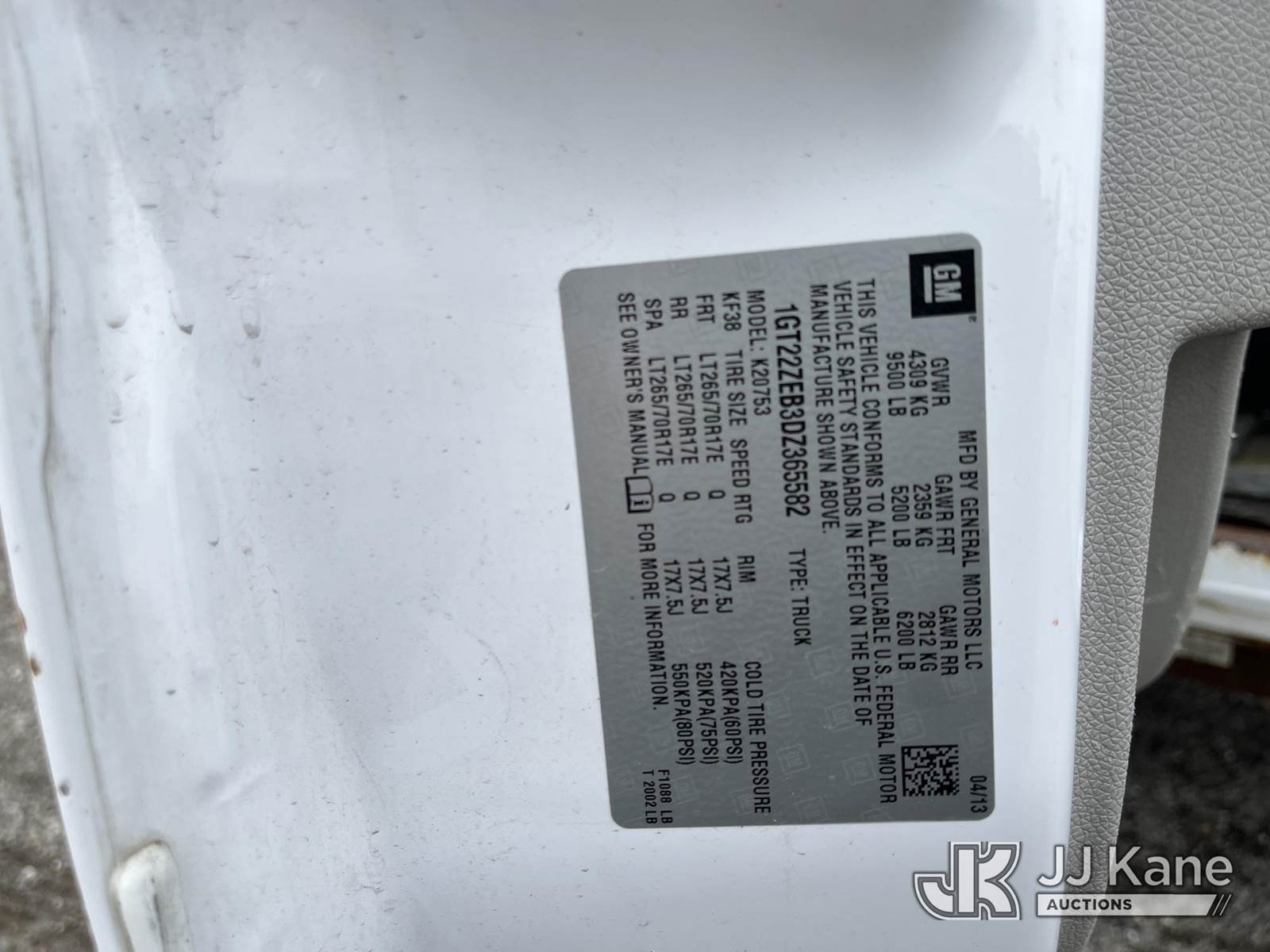2013 GMC Sierra 2500HD 4x4 Extended-Cab Pickup Truck, 6.0L V8 OHV 16V CNG Dual Fuel (CNG & Gas), 6-Speed Automatic, A/C, with service cap, (109,736 miles) (Runs & Moves) (Engine Noise, Interior Damage, Rust Damage) (Seller States: CNG Tank Out Of Service) This is a Titled Item NOTE: This unit is being sold AS IS/WHERE IS via Timed Auction and is located in Louisville, OH. Inspection & preview days for this unit are the 2 business days prior to the first day of items closing for this auction, item is located at 3648 Beck Ave Louisville, OH 44641 and hours of operations are 8a-4p. For pre-sale questions, please contact Aaron Coleman @ (330) 495-4041 or aaron.coleman@jjkane.com. (Buyer is responsible for removal. Assistance by consignor or JJ Kane Auctions is not assured.)