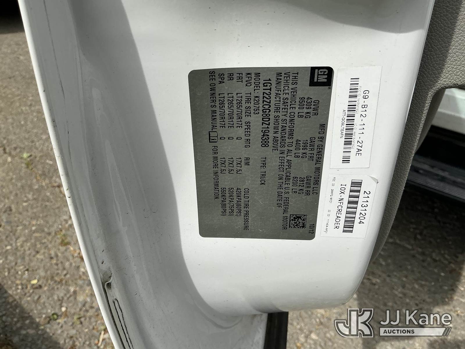 2013 GMC Sierra 2500HD Extended-Cab Pickup Truck, s/n 1GT22ZCG8DZ194388, 6.0L V8 OHV 16V 4WD, gas, 6-Speed Automatic, A/C, with bed cover, (183,740 miles) (Runs & Moves) This is a Titled Item NOTE: This unit is being sold AS IS/WHERE IS via Timed Auction and is located in Dixon, CA. Inspection & preview days for this unit are the 2 business days prior to the first day of items closing for this auction, item is located at 8668 Sparling Ln Dixon, CA 95620 and hours of operations are 8a-4p. For pre-sale questions, please contact JJ Kane Staff at (707) 678-8060 (dixon@jjkane.com). Dealer License Number 45696. (Buyer is responsible for removal. Assistance by consignor or JJ Kane Auctions is not assured.)