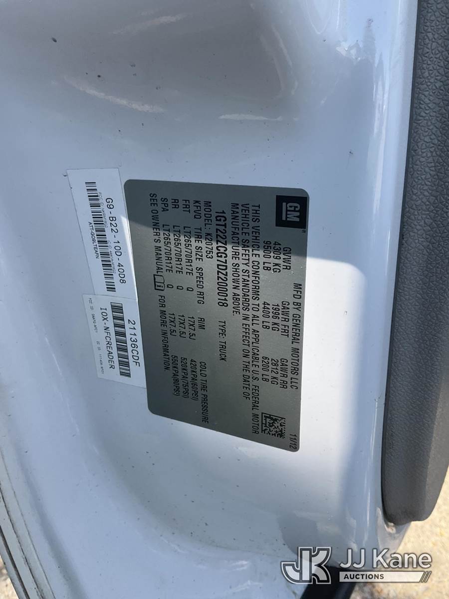 2013 GMC Sierra 2500HD Extended-Cab Pickup Truck, s/n 1GT22ZCG7DZ200018, 6.0L V8 OHV 16V 4WD, FFV, 6-Speed Automatic, A/C, with Front mounted winch, light bar, 2 tool boxes, tow package, (183,154 miles) (Runs & Moves) This is a Titled Item NOTE: This unit is being sold AS IS/WHERE IS via Timed Auction and is located in Dixon, CA. Inspection & preview days for this unit are the 2 business days prior to the first day of items closing for this auction, item is located at 8668 Sparling Ln Dixon, CA 95620 and hours of operations are 8a-4p. For pre-sale questions, please contact JJ Kane Staff at (707) 678-8060 (dixon@jjkane.com). Dealer License Number 45696. (Buyer is responsible for removal. Assistance by consignor or JJ Kane Auctions is not assured.)
