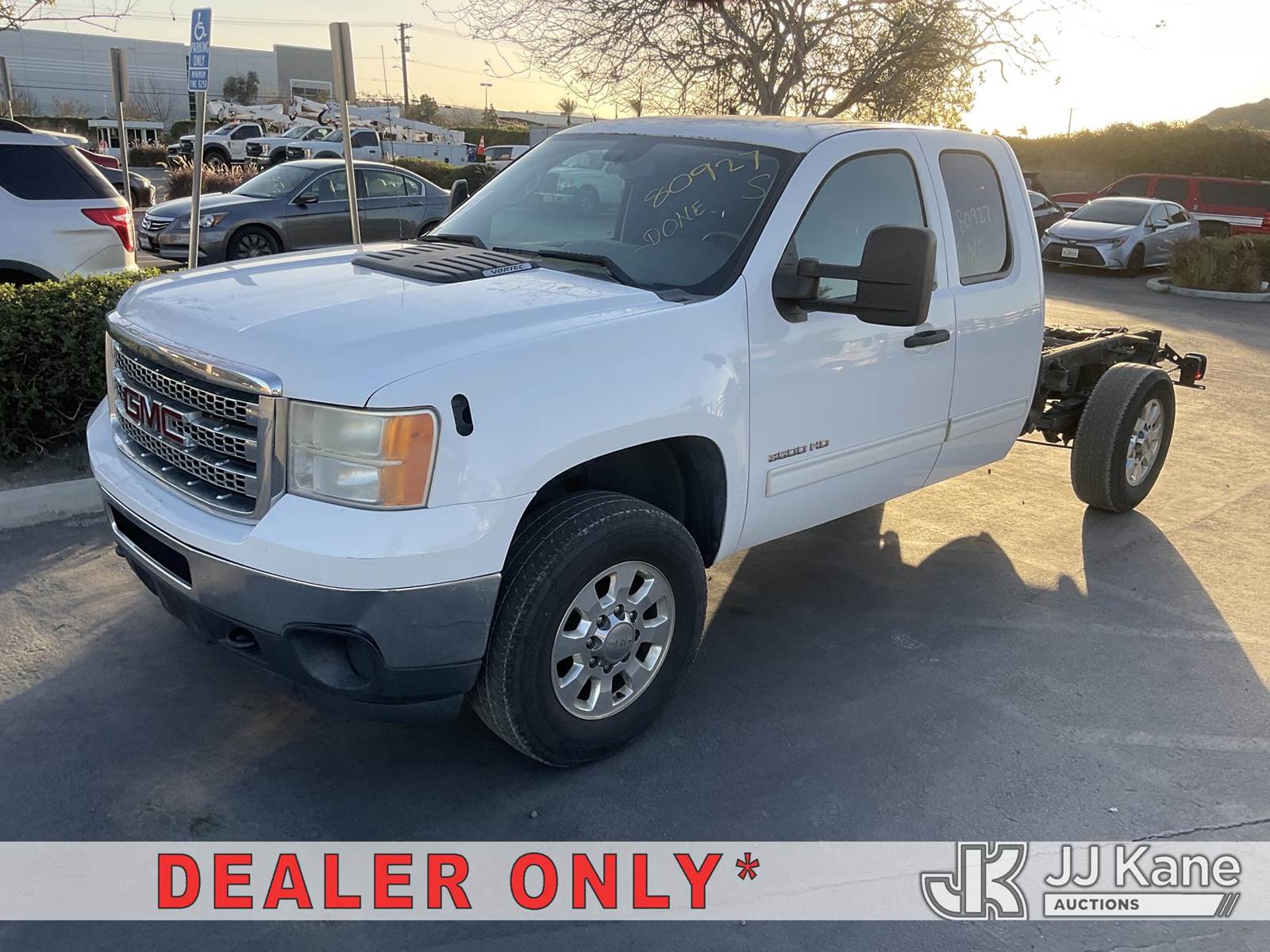 2013 GMC Sierra 3500HD Extended-Cab & Chassis, s/n 1GD523CG0DZ326758, 8-cyl gas, 4wd, 6-Speed Automatic, A/C, (166,046 miles) (Runs & Moves) (No Horn, Missing Mud Flaps) (Bidding Restricted to Licensed Vehicle Dealers Only), This is a Titled Item NOTE: This unit is being sold AS IS/WHERE IS via Timed Auction and is located in Jurupa Valley, CA. Inspection & preview days for this unit are the 2 business days prior to the first day of items closing for this auction, item is located at 4510 Muth Way Jurupa Valley, CA 92509 and hours of operations are 8a-4p. For pre-sale questions, please contact please contact Office Staff @ (310) 353-7140. Dealer License Number 45696. (Buyer is responsible for removal. Assistance by consignor or JJ Kane Auctions is not assured.)