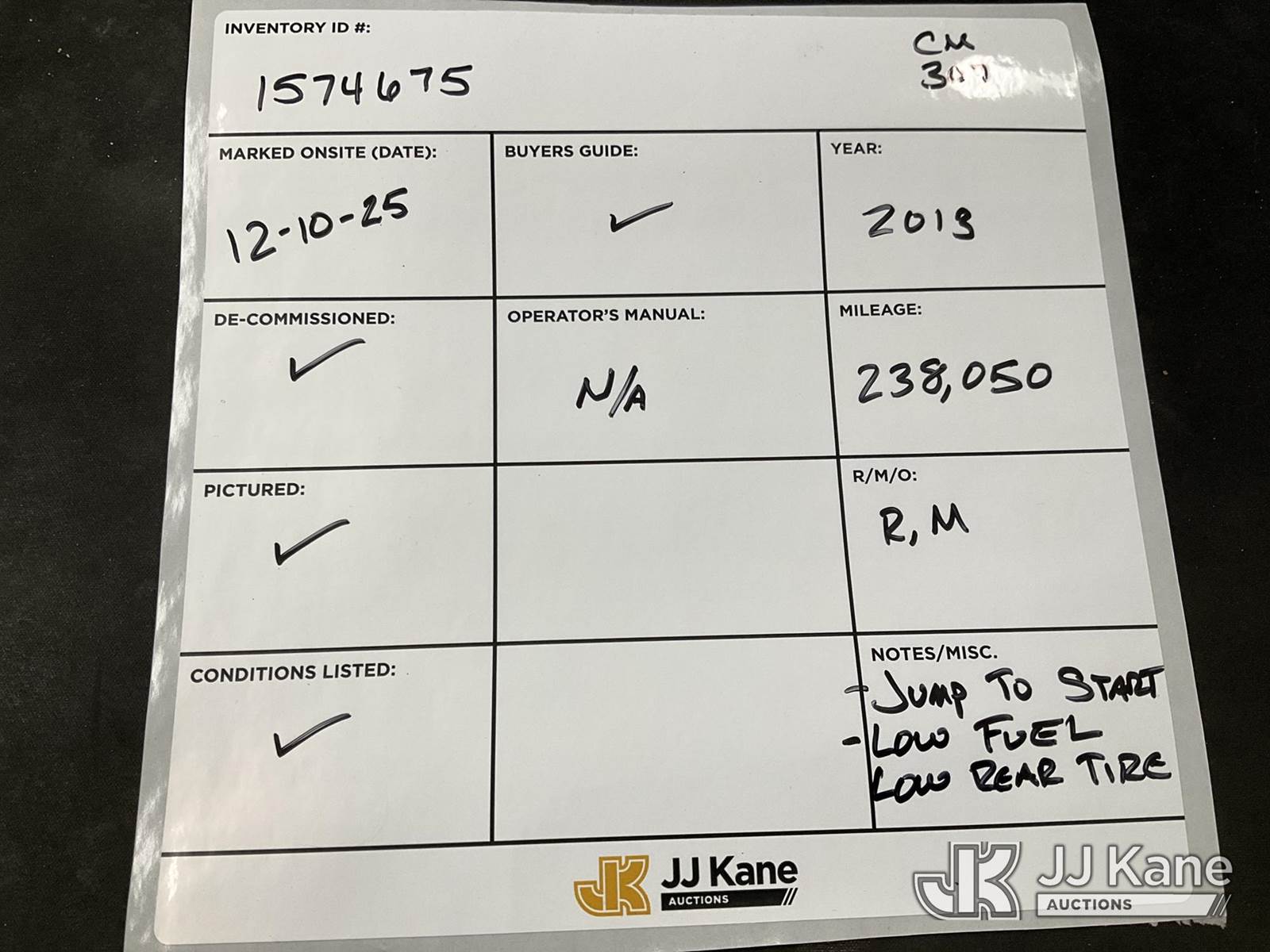 2013 GMC Sierra 3500HD Work Truck Ext. Cab Long Box 4WD Service Truck, 6.0L V8 OHV 16V FFV 6-Speed Automatic, A/C, with Power converter , (238,050 miles) (Runs & Moves) (Jump To Start, Low Rear Tire,) This is a Titled Item NOTE: This unit is being sold AS IS/WHERE IS via Timed Auction and is located in Charlotte, MI. Inspection & preview days for this unit are the 2 business days prior to the first day of items closing for this auction, item is located at 750 Island Hwy Charlotte, MI 48813 and hours of operations are 8a-4p. For pre-sale questions, please contact Corey Cook at (517) 983-0796 or corey.cook@jjkane.com (Buyer is responsible for removal. Assistance by consignor or JJ Kane Auctions is not assured.)