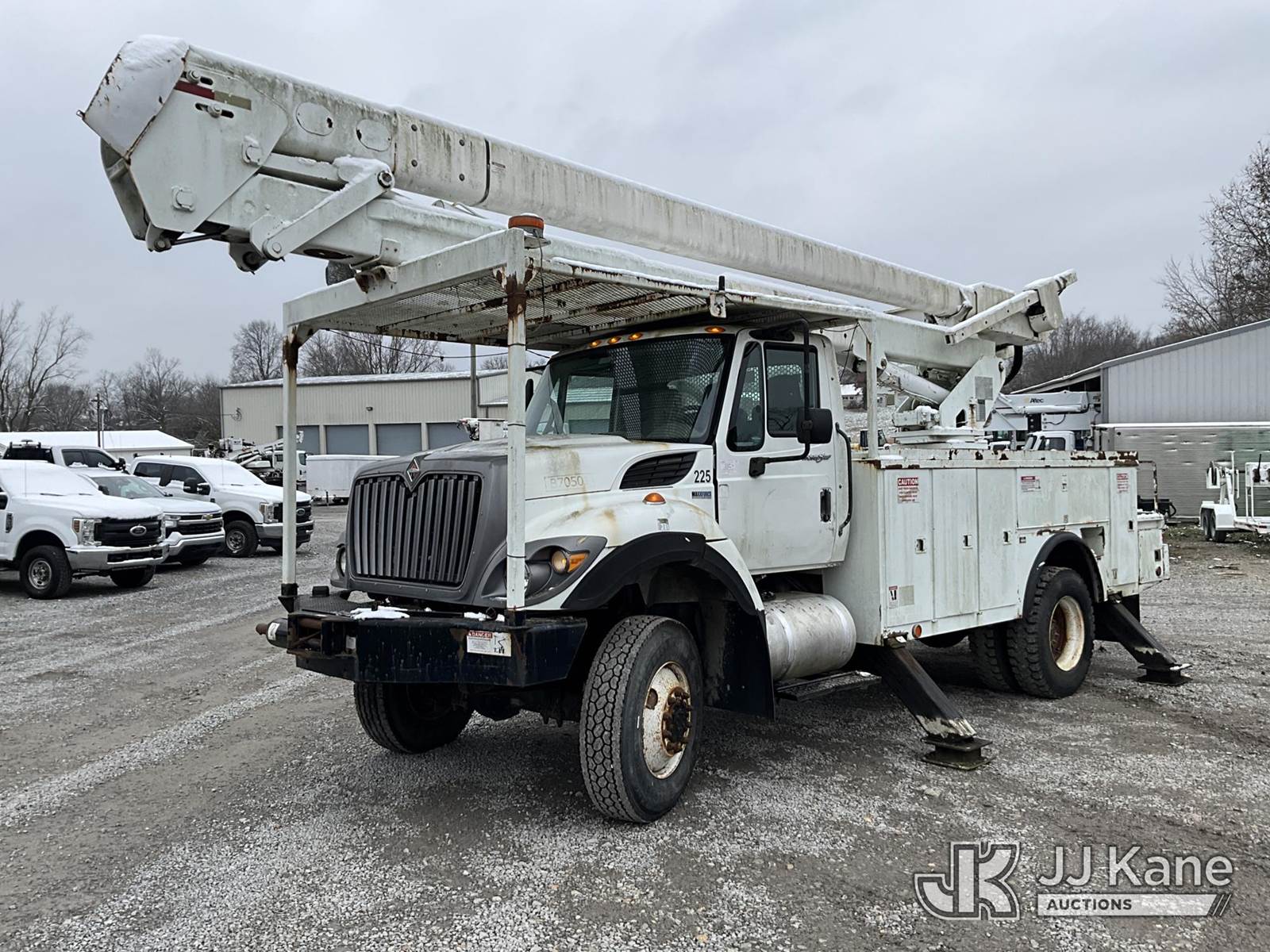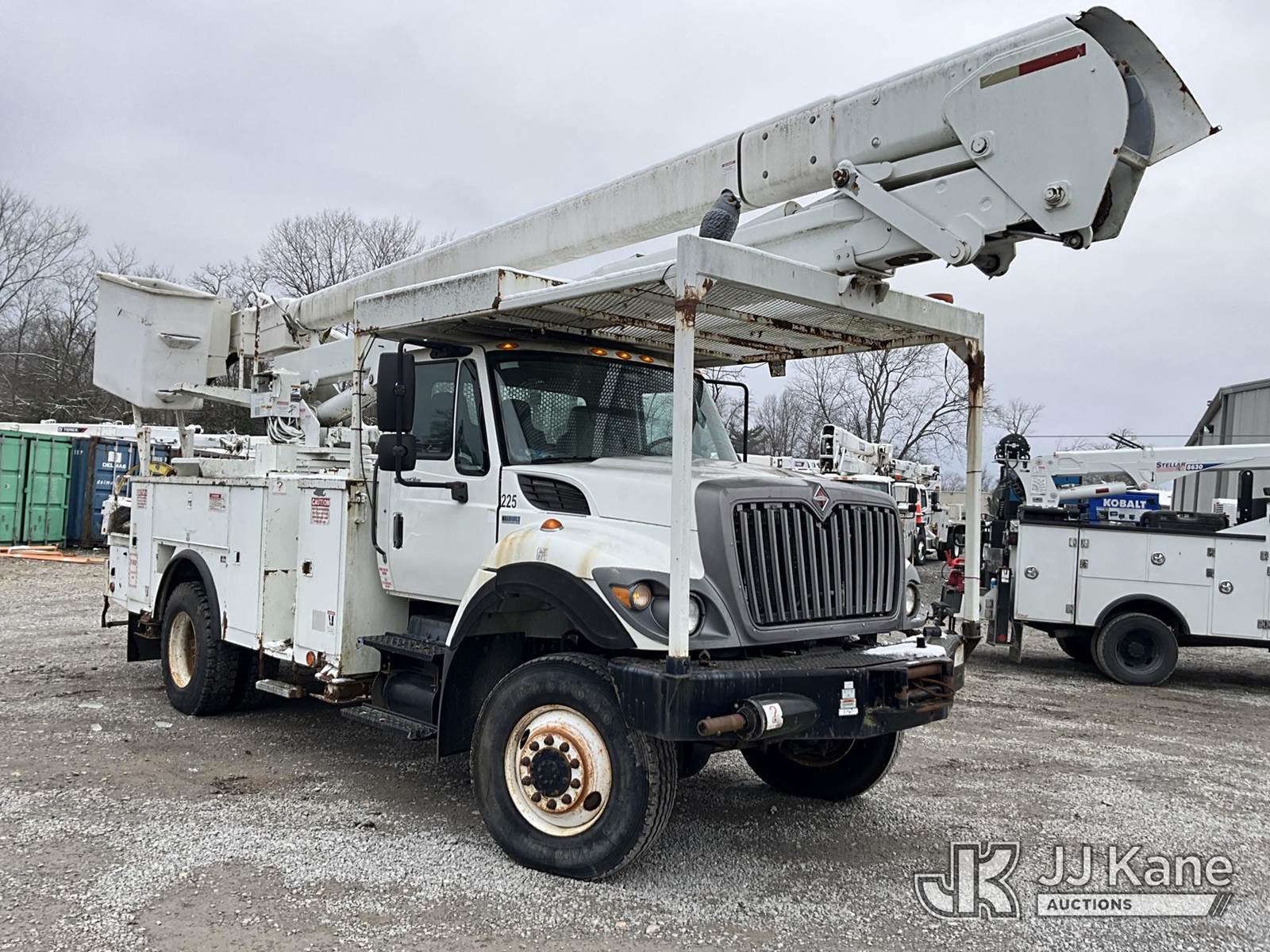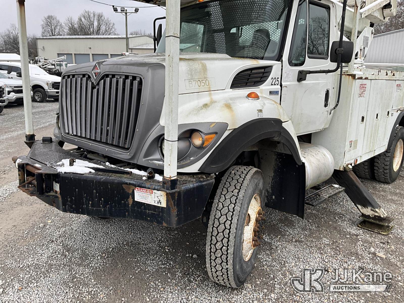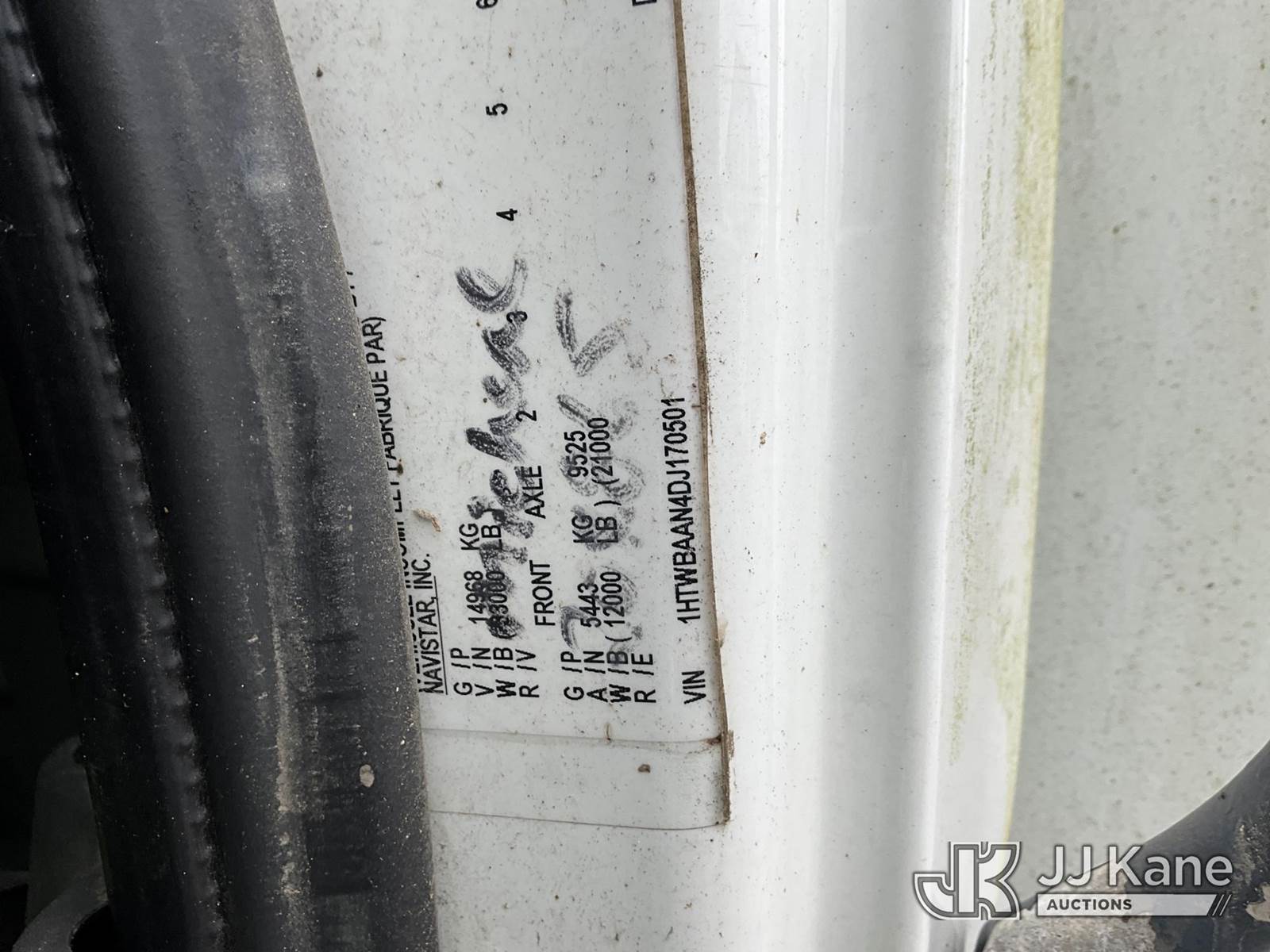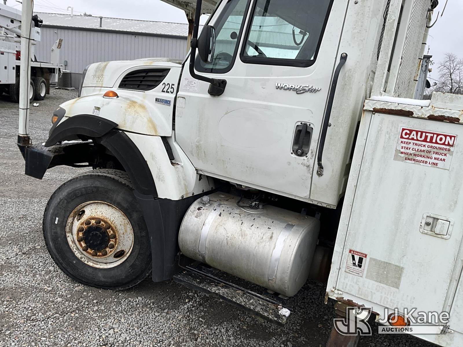 HiRanger 5TC-55, 60 ft, Material Handling Bucket Truck s/n 2120346819, with two man bucket & 4 hyd. outriggers, mounted behind cab on 2013 International 7300 4x4 Utility Truck, MaxxForce diesel, 6-spd, A/C, with front winch, capsatn, (75,396 miles) (Runs, Moves & Outriggers Operate, Upper Condition Unknown, Electrical Issue, ABS Light On) (Reads 8,637 hours) This is a Titled Item NOTE: This unit is being sold AS IS/WHERE IS via Timed Auction and is located in Clay, KY. For more information & removal arrangements please contact Spencer Owen @ 502-232-2541. Load Out will be by appointment only M-F; must call 24 HRS. in advance. Buyer/Hauler must present copy of paid invoice upon arrival. Purchaser acknowledges ALL lots must be removed within 5 business days of Auction, or a storage fee may be incurred. This item is used and may contain defects that are not immediately detectable. Text description and photos given are meant to be used as a guide only. The conditions are provided by the consignor; you are responsible for inspecting item before bidding. All information provided is believed to be correct but no warranty as such is either intended or implied. All items are sold AS IS - WHERE IS AND WITH ALL FAULTS AND DEFECTS THEREIN. Auctioneer Michael Whitebread / License # 256617 (Missing manuals, See Auction Company for Manufacturers Information to obtain manuals) (Buyer is responsible for removal. Assistance by consignor or JJ Kane Auctioneers is not assured.)