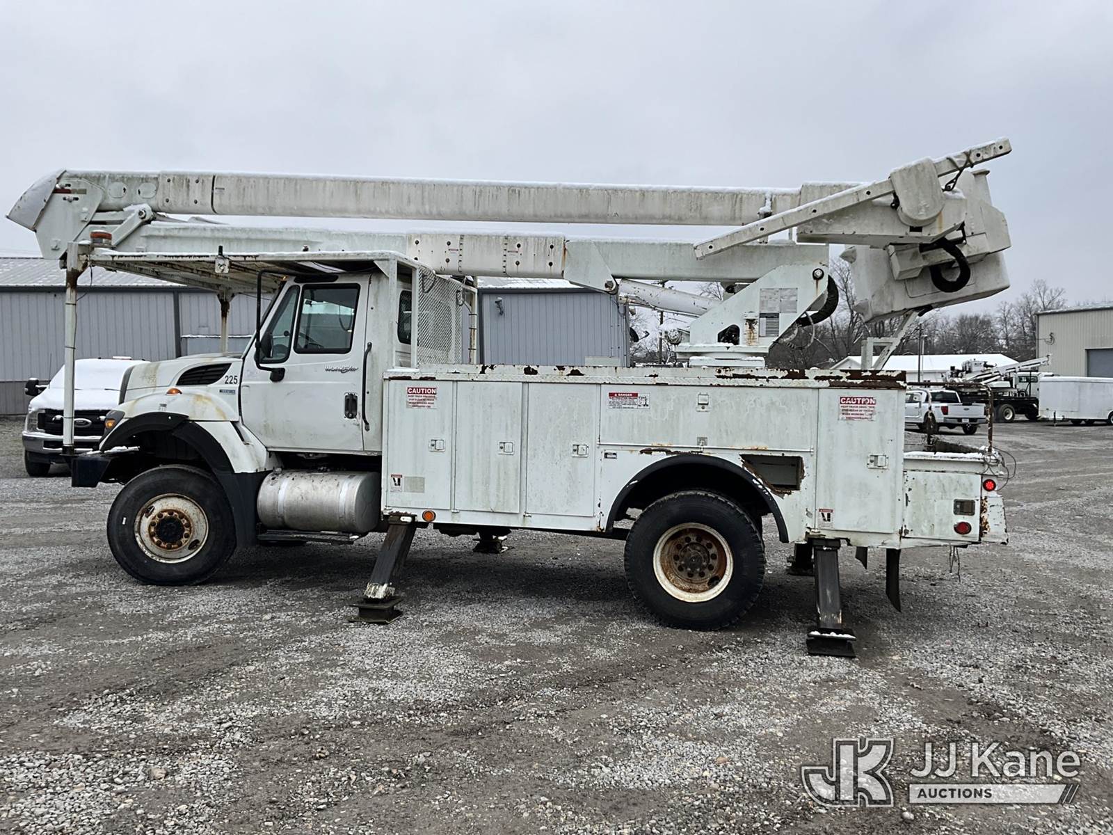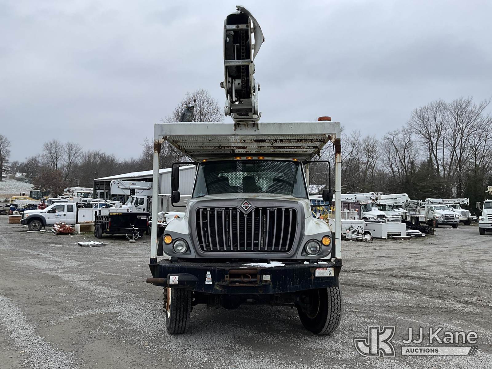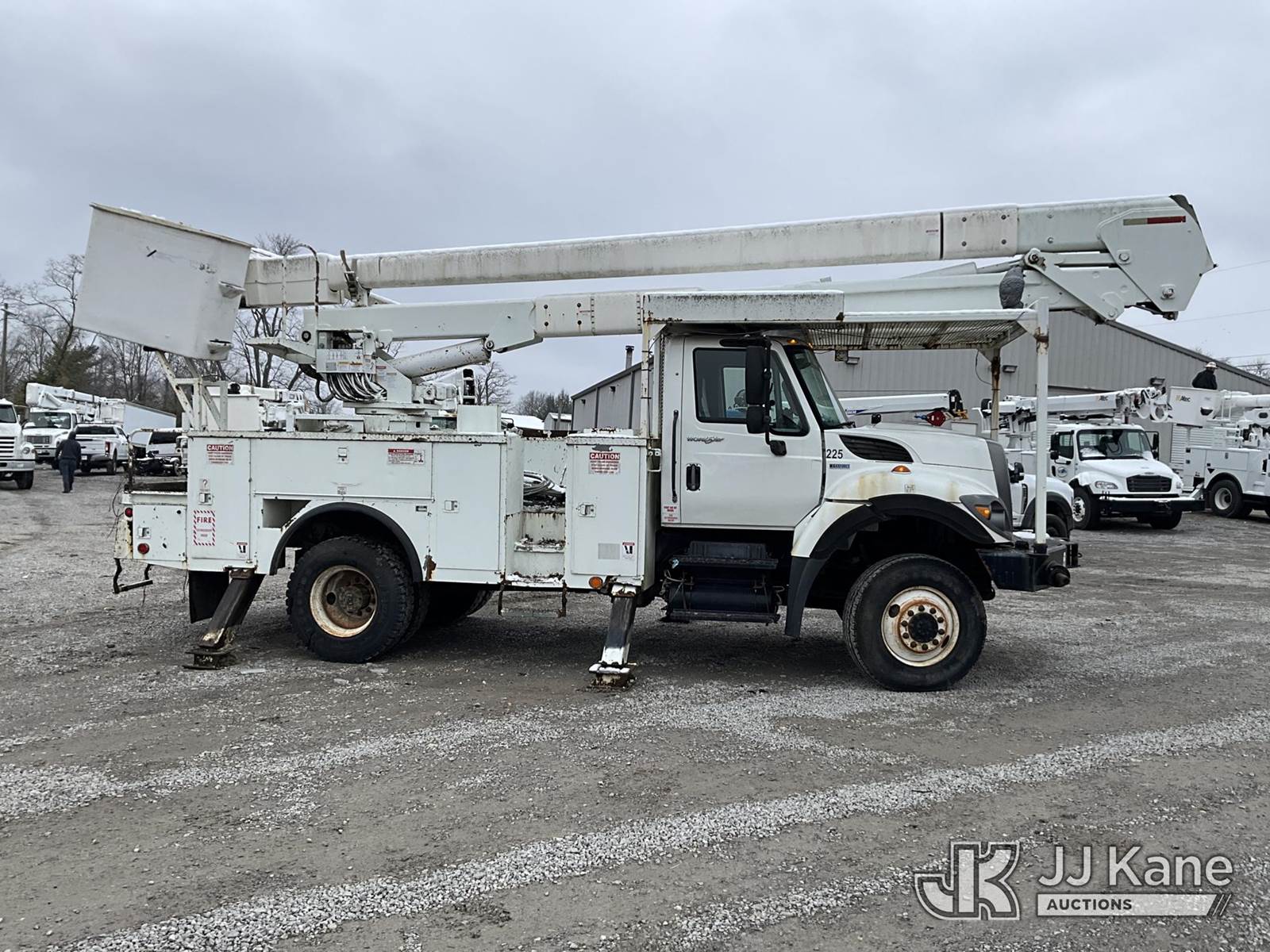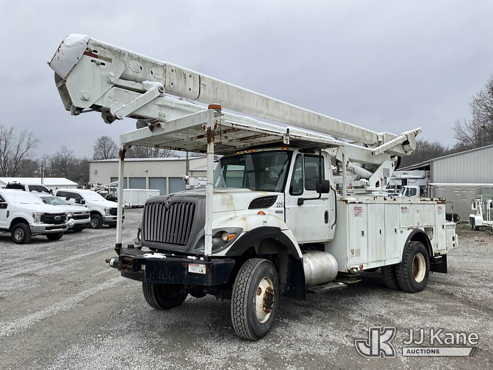 HiRanger 5TC-55, 60 ft, Material Handling Bucket Truck s/n 2120346819, with two man bucket & 4 hyd. outriggers, mounted behind cab on 2013 International 7300 4x4 Utility Truck, MaxxForce diesel, 6-spd, A/C, with front winch, capsatn, (75,396 miles) (Runs, Moves & Outriggers Operate, Upper Condition Unknown, Electrical Issue, ABS Light On) (Reads 8,637 hours) This is a Titled Item NOTE: This unit is being sold AS IS/WHERE IS via Timed Auction and is located in Clay, KY. For more information & removal arrangements please contact Spencer Owen @ 502-232-2541. Load Out will be by appointment only M-F; must call 24 HRS. in advance. Buyer/Hauler must present copy of paid invoice upon arrival. Purchaser acknowledges ALL lots must be removed within 5 business days of Auction, or a storage fee may be incurred. This item is used and may contain defects that are not immediately detectable. Text description and photos given are meant to be used as a guide only. The conditions are provided by the consignor; you are responsible for inspecting item before bidding. All information provided is believed to be correct but no warranty as such is either intended or implied. All items are sold AS IS - WHERE IS AND WITH ALL FAULTS AND DEFECTS THEREIN. Auctioneer Michael Whitebread / License # 256617 (Missing manuals, See Auction Company for Manufacturers Information to obtain manuals) (Buyer is responsible for removal. Assistance by consignor or JJ Kane Auctioneers is not assured.)