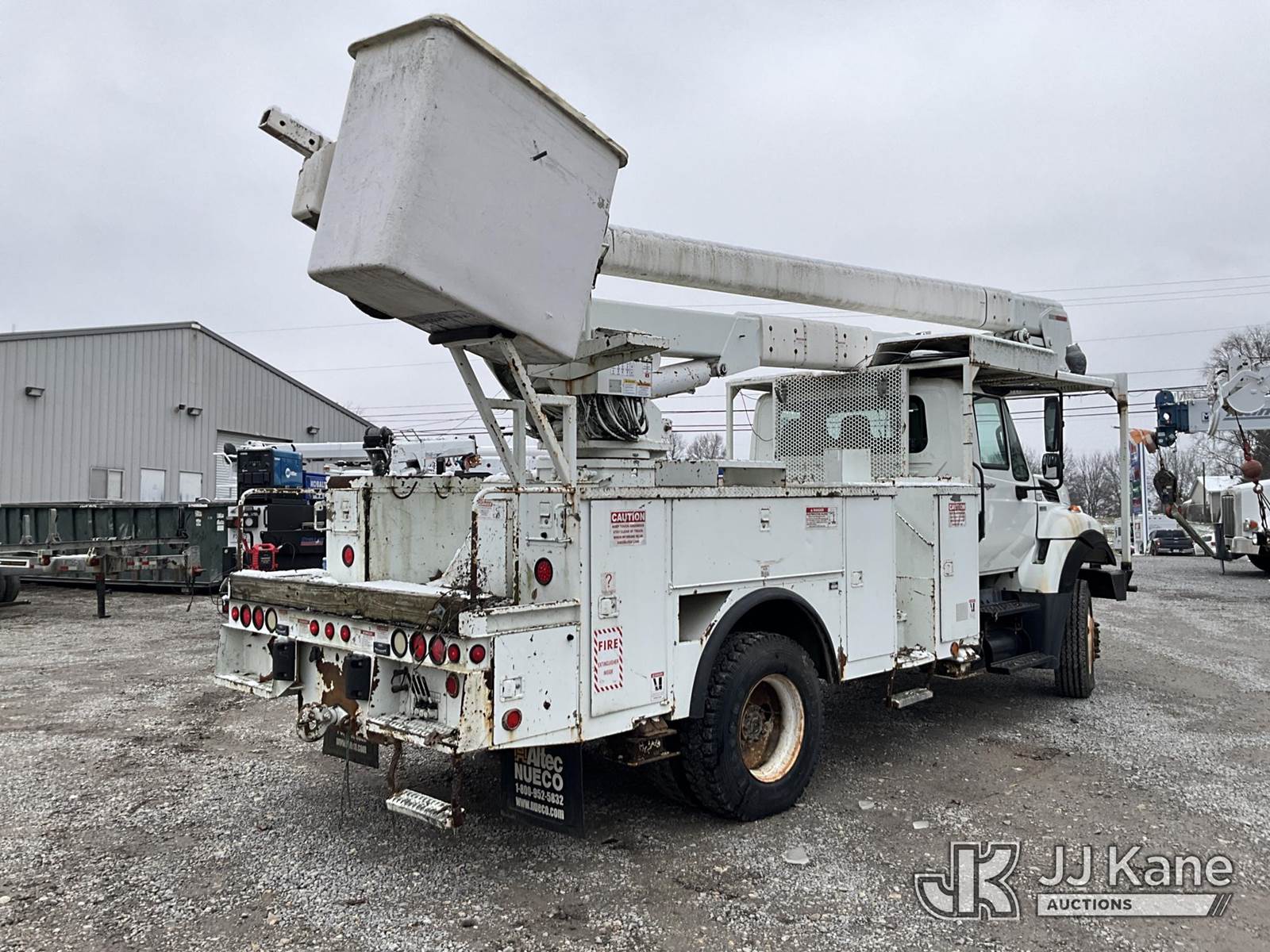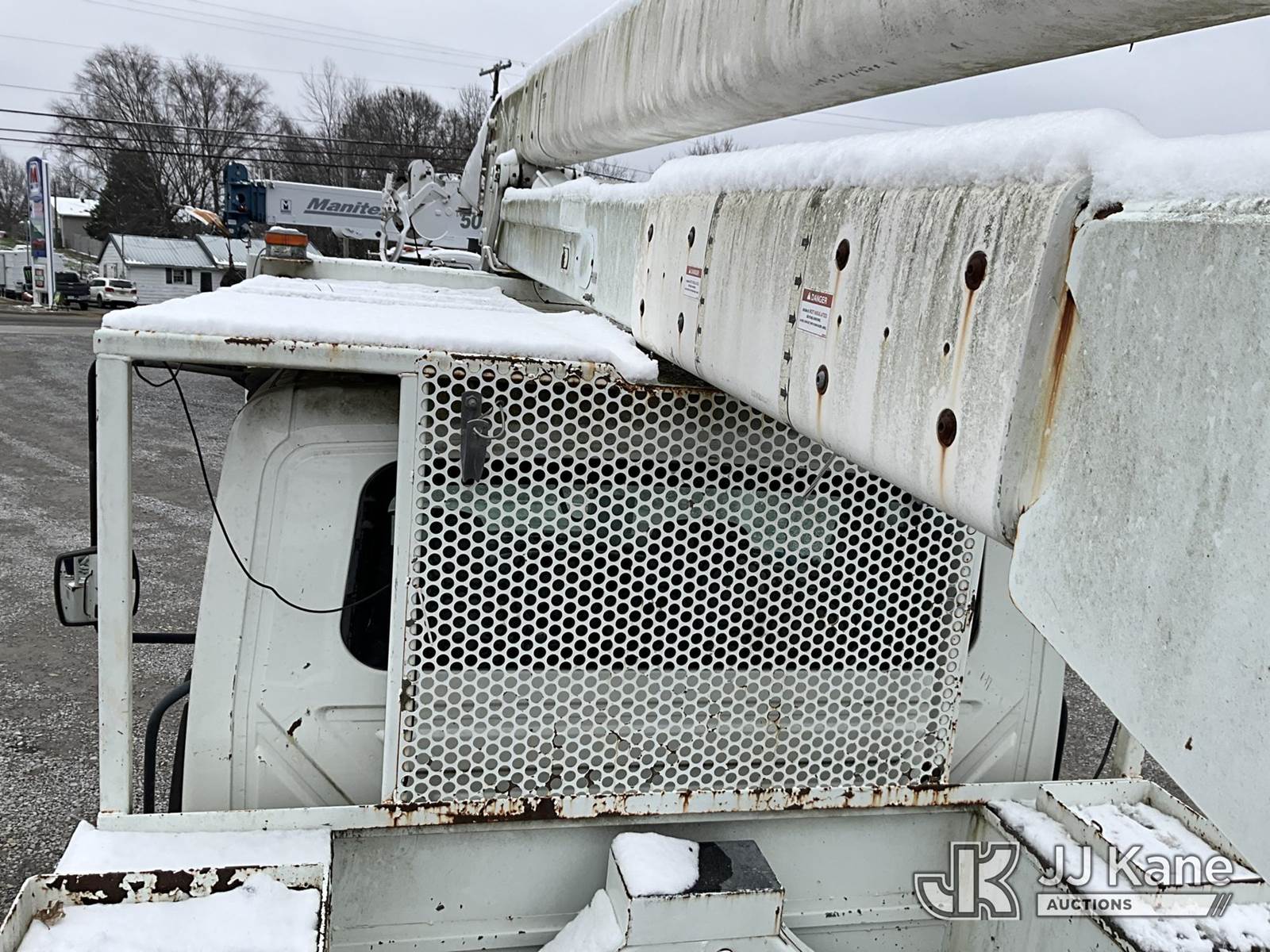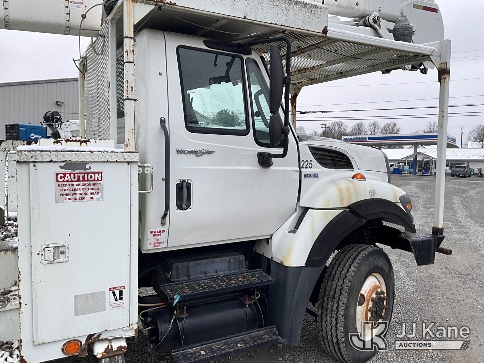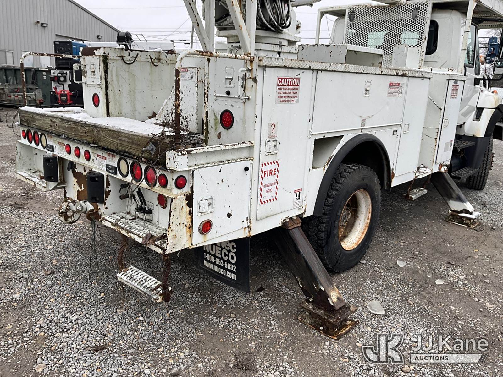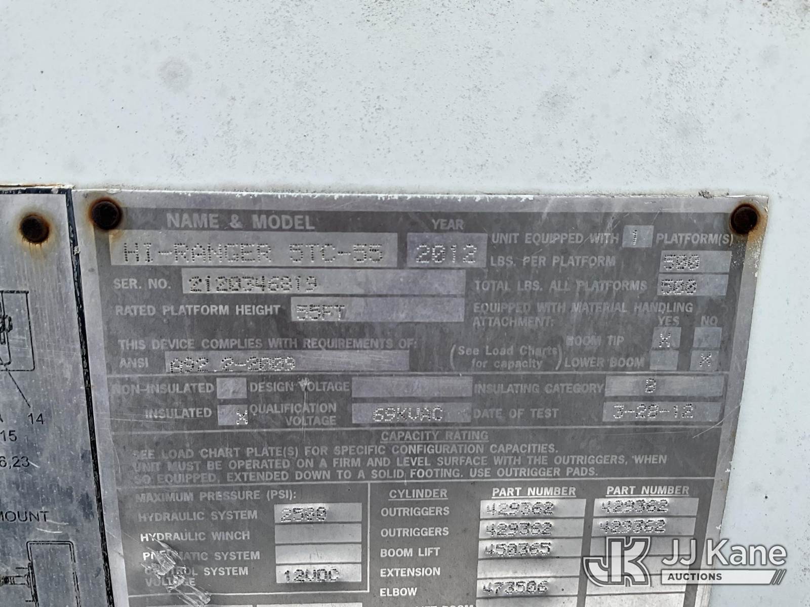 HiRanger 5TC-55, 60 ft, Material Handling Bucket Truck s/n 2120346819, with two man bucket & 4 hyd. outriggers, mounted behind cab on 2013 International 7300 4x4 Utility Truck, MaxxForce diesel, 6-spd, A/C, with front winch, capsatn, (75,396 miles) (Runs, Moves & Outriggers Operate, Upper Condition Unknown, Electrical Issue, ABS Light On) (Reads 8,637 hours) This is a Titled Item NOTE: This unit is being sold AS IS/WHERE IS via Timed Auction and is located in Clay, KY. For more information & removal arrangements please contact Spencer Owen @ 502-232-2541. Load Out will be by appointment only M-F; must call 24 HRS. in advance. Buyer/Hauler must present copy of paid invoice upon arrival. Purchaser acknowledges ALL lots must be removed within 5 business days of Auction, or a storage fee may be incurred. This item is used and may contain defects that are not immediately detectable. Text description and photos given are meant to be used as a guide only. The conditions are provided by the consignor; you are responsible for inspecting item before bidding. All information provided is believed to be correct but no warranty as such is either intended or implied. All items are sold AS IS - WHERE IS AND WITH ALL FAULTS AND DEFECTS THEREIN. Auctioneer Michael Whitebread / License # 256617 (Missing manuals, See Auction Company for Manufacturers Information to obtain manuals) (Buyer is responsible for removal. Assistance by consignor or JJ Kane Auctioneers is not assured.)