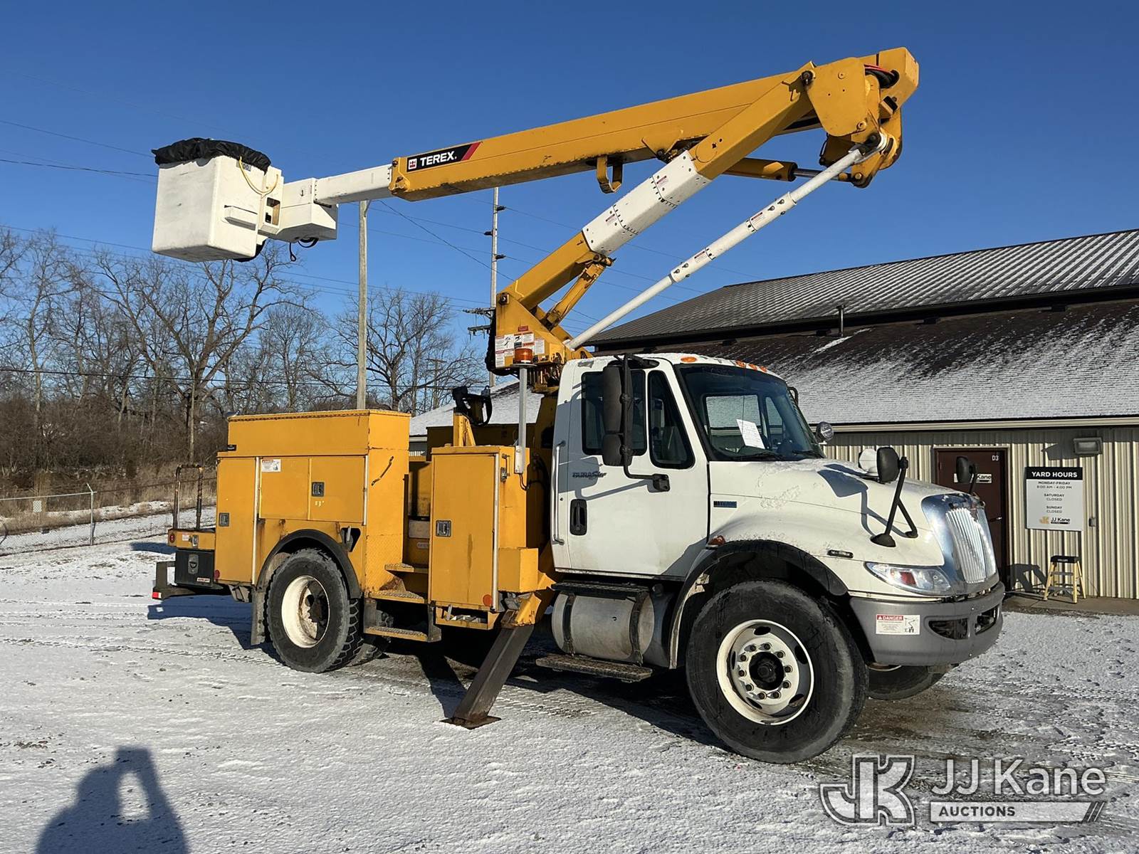 HiRanger TL50, 55 ft, Articulating & Telescopic Bucket Truck s/n 2121048189, with two-man bucket & 2 hyd outriggers, mounted behind cab on 2013 International 4300 Utility Truck, 7.6L L6 DIESEL 4X2, Auto, A/C, (210,729 miles) (Runs, Moves & Upper Operates) (Paint/Rust Damage) (Hours Unknown) This is a Titled Item NOTE: This unit is being sold AS IS/WHERE IS via Timed Auction and is located in Fort Wayne, IN. Inspection & preview days for this unit are the 2 business days prior to the first day of items closing for this auction, item is located at 3020 Commercial Rd Fort Wayne, IN 46809 and hours of operations are 8a-4p. For pre-sale questions, please contact Eric Mcintosh @ (260) 205-2483 (Manuals provided in cab) (Buyer is responsible for removal. Assistance by consignor or JJ Kane Auctions is not assured.)