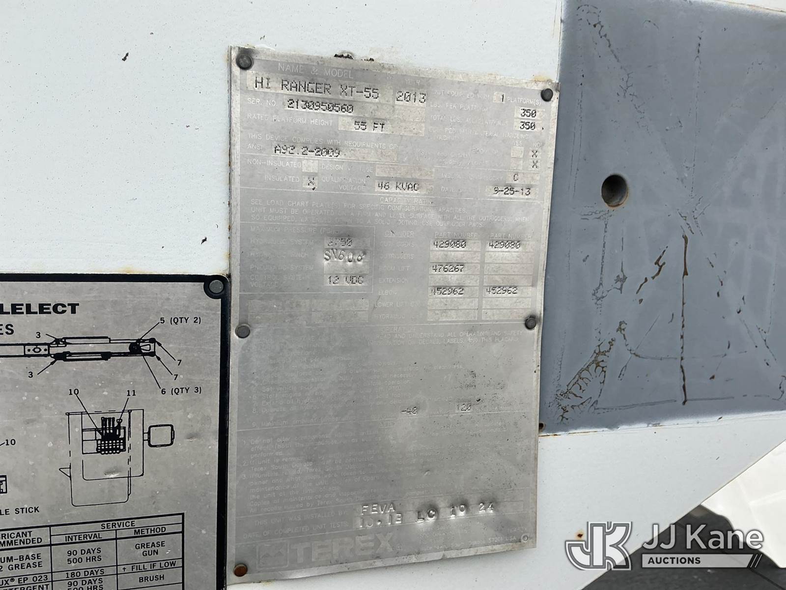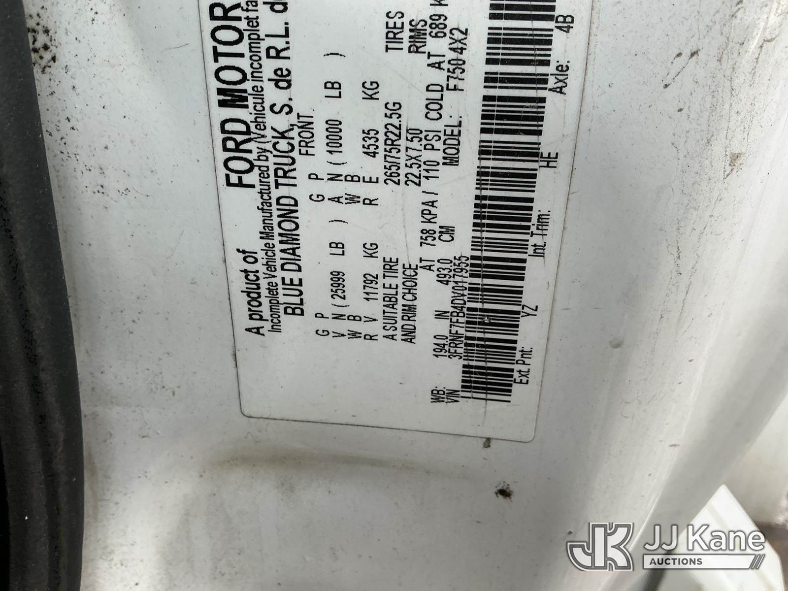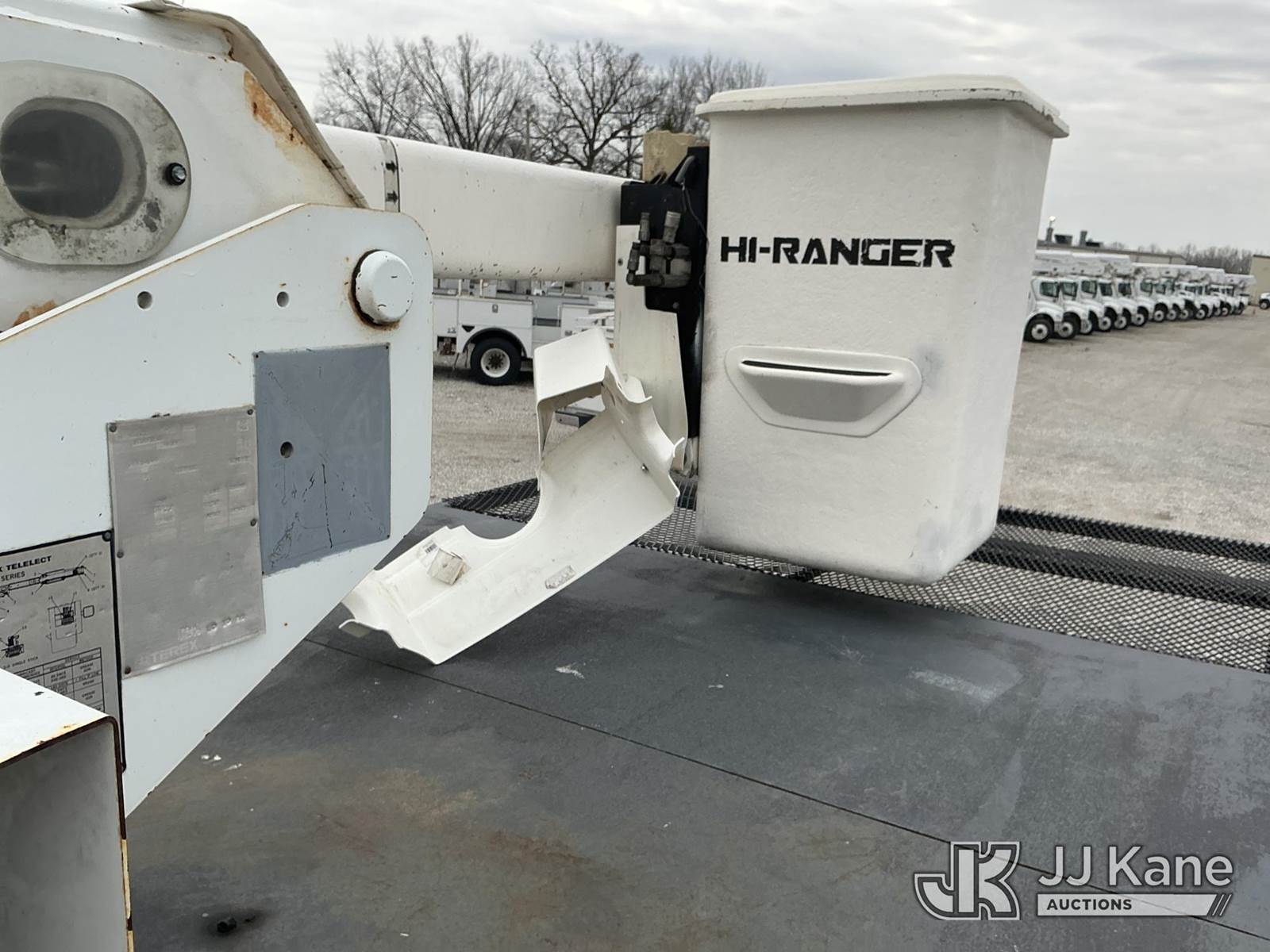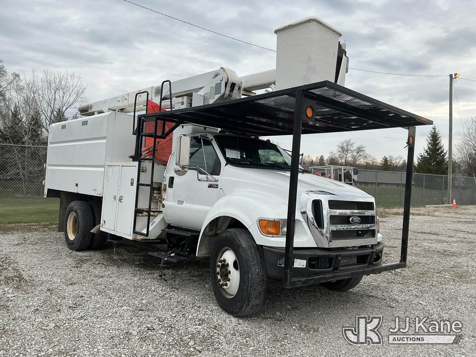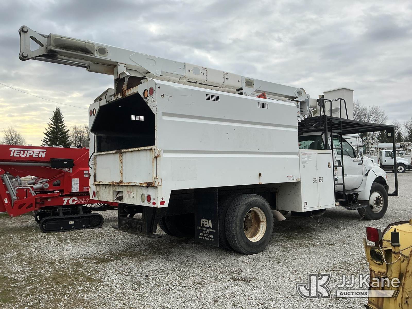 HiRanger XT-55, 60 ft, Over-Center Bucket Truck s/n 2130950560, with single-man bucket, mounted behind cab on 2013 Ford F-750 Chipper Dump Truck, 6.7L L6 Diesel, 6-spd, A/C, with 11 ft. body, (105,283 miles) (Not Running, Condition Unknown, Upper Condition Unknown, Missing Batteries, Body/Paint Damage) This is a Titled Item NOTE: This unit is being sold AS IS/WHERE IS via Timed Auction and is located in Fort Wayne, IN. Inspection & preview days for this unit are the 2 business days prior to the first day of items closing for this auction, item is located at 3020 Commercial Rd Fort Wayne, IN 46809 and hours of operations are 8a-4p. For pre-sale questions, please contact Eric Mcintosh @ (260) 205-2483 (Manuals provided in cab) (Buyer is responsible for removal. Assistance by consignor or JJ Kane Auctions is not assured.)
