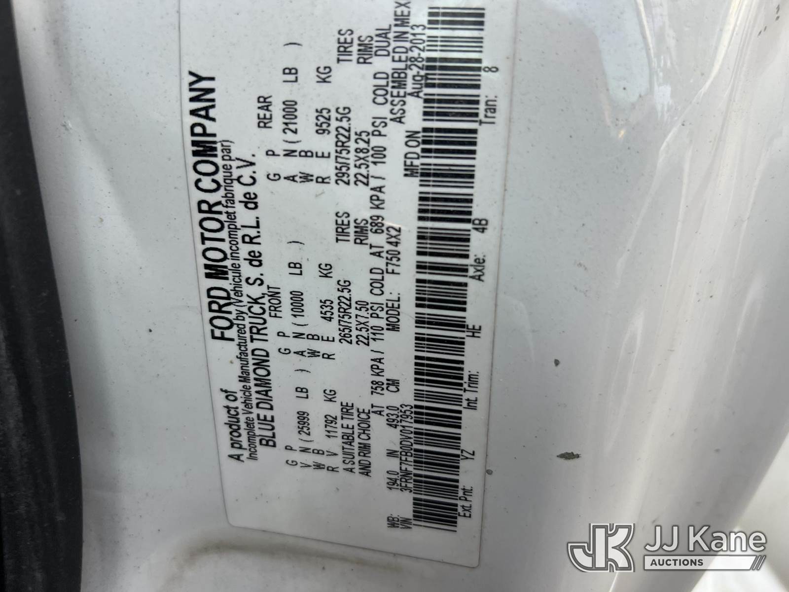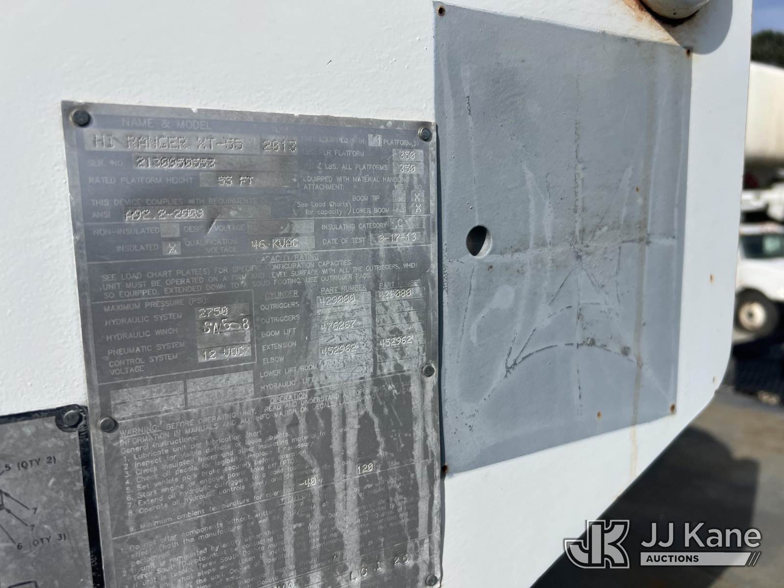 HiRanger XT-55, 60 ft, Over-Center Bucket Truck s/n 2130950553, with single-man bucket, mounted behind cab on 2013 Ford F750 Chipper Dump Truck, Cummins ISB 6.7L diesel, 6-spd, A/C, with 11 ft body, (72,428 miles (unverified)) (Not Running, Condition Unknown, Upper Condition Unknown, Driveshaft Out) This is a Titled Item NOTE: This unit is being sold AS IS/WHERE IS via Timed Auction and is located in Chester, VA. Inspection & preview days for this unit are the 2 business days prior to the first day of items closing for this auction, item is located at 13301 Great Coastal Dr Chester, VA 23836 and hours of operations are 7am-3pm. For pre-sale questions, please contact Doug Caton @ 804-807-4574. (Missing manuals, See Auction Company for Manufacturers Information to obtain manuals) (Buyer is responsible for removal. Assistance by consignor or JJ Kane Auctions is not assured.)