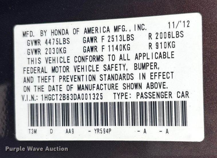 VIN: 1HGCT2B83DA001325