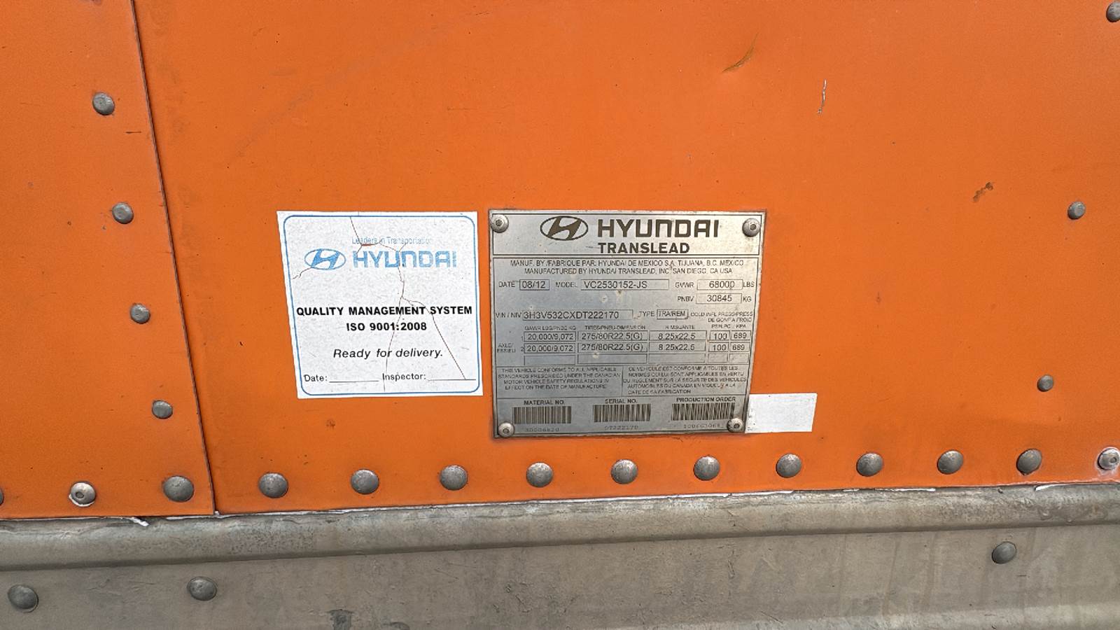 2012 Hyundai 53 ft Dry Van Trailer - Swing Door, Spring Suspension, HAVCO Composite Floor
