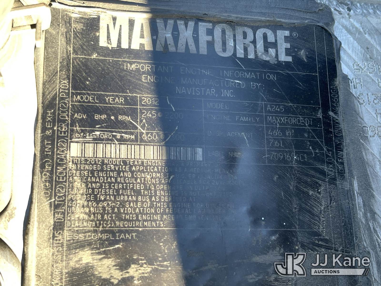 2013 International 4300 Street Sweeper Truck, 7.6L L6 4X2, DIESEL, Auto, A/C, with Tymco 600, (62,307 miles) (Runs, Moves, & Sweeper Engine Only Cranks ) (Reads 9,327 hours) Subject to CARB Regs,CARB non Compliant,Cannot Operate on CA Roads/Highways until Compliant This is a Titled Item NOTE: This unit is being sold AS IS/WHERE IS via Timed Auction and is located in Dixon, CA. Inspection & preview days for this unit are the 2 business days prior to the first day of items closing for this auction, item is located at 8668 Sparling Ln Dixon, CA 95620 and hours of operations are 8a-4p. For pre-sale questions, please contact JJ Kane Staff at (707) 678-8060 (dixon@jjkane.com). Dealer License Number 45696. (Buyer is responsible for removal. Assistance by consignor or JJ Kane Auctions is not assured.)