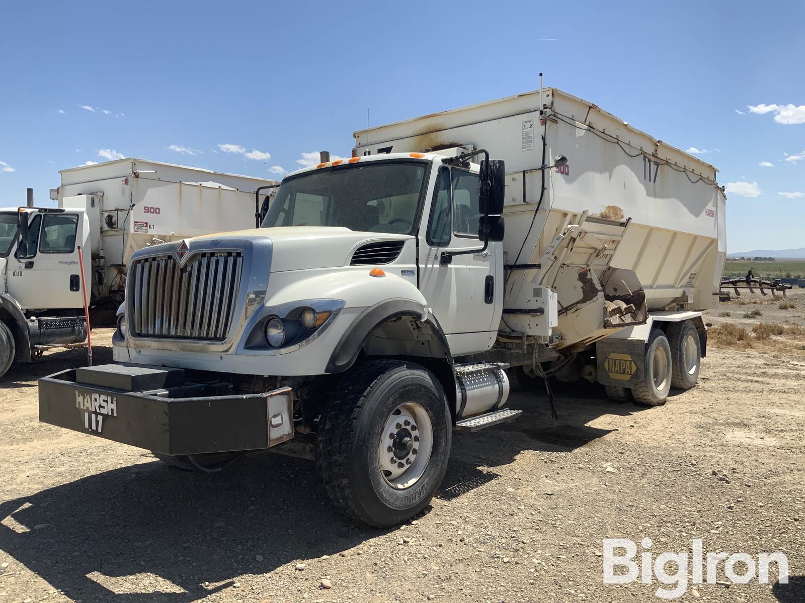 2013 International 7400 T/A Feed Mixer Truck W/Harsh 900. 21.783 Hrs Showing. 139.899 Miles Showing. Title Will Be Marked Miles Exempt. MaxxForce 9.3L Turbo Diesel Engine. Allison Automatic Transmission. Air/Heat. Wet Kit. Air Seat. 240" Wheelbase. 20' Harsh Model 900 Feed Box. Load Cells. 425/65R22.5 Front Super Singles.11R22.5 Rear Dual Rear Tires. NOTE: Folding Discharge Chute And Cylinder Missing. Top 2- Mixing Augers In Box Are Missing. Cracked Windshield. Engine Will Turn Over But Will Not Start SEE VIDEO. NOT OPERATIONAL DAY OF LISTING. VIN: 1HTWGAZTXDJ102899