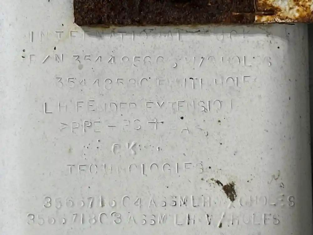 (Used) 2013 International DuraStar 4300, FENDER EXTENSION- Part Number: 3544856C6, Side: Driver Side, Color: White, Material: Plastic, Reference images for condition. For more information about this item, give us a call. We ship Worldwide! (CRG HEAVY TRUCK PARTS) 929 W PULASKI HWY, ELKTON, MD 21921