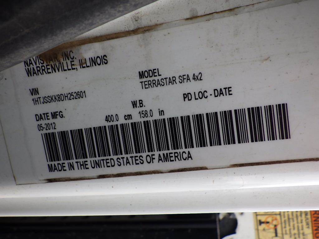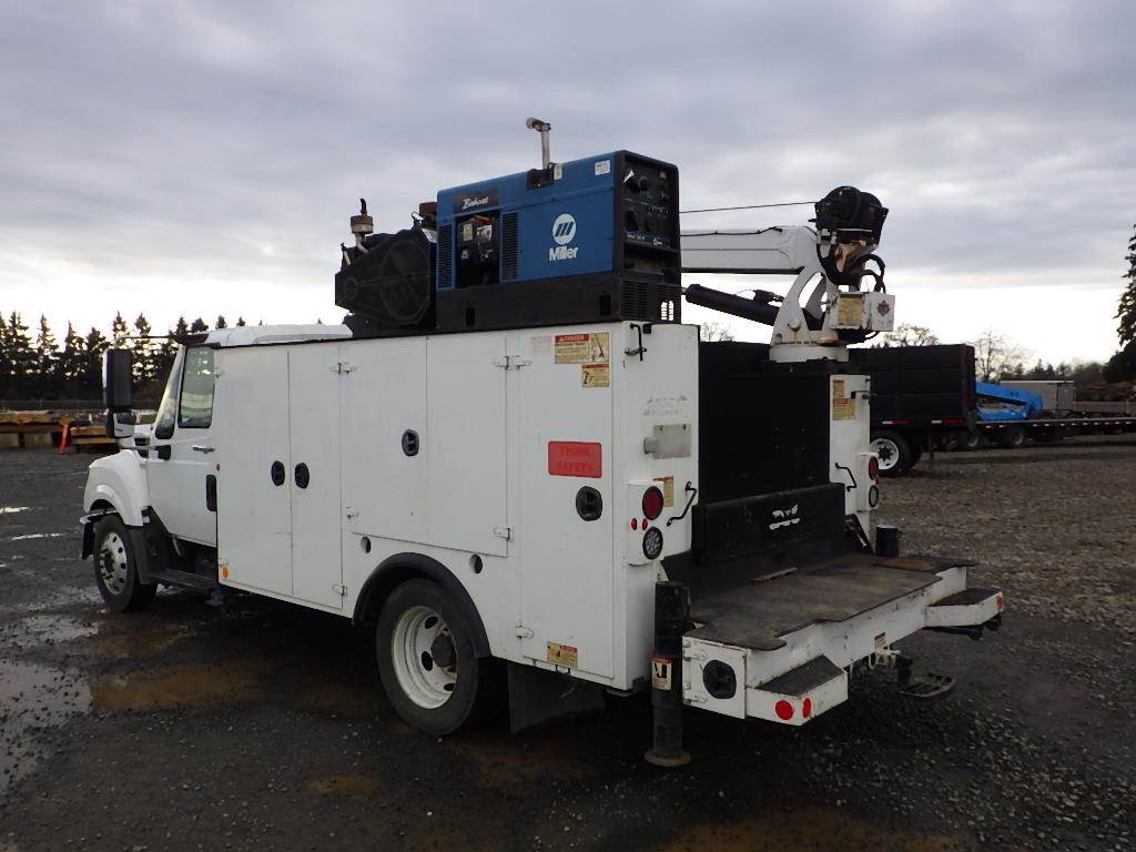 VIN: 1HTJSSKK8DH252601 6-Cyl Turbo Diesel, Automatic, A/C, Heat, Air Ride Seat, AM/FM/BT, Power Windows/Locks, Spring Suspension, Tow Package, 11' Utility Bed, IMT 7500 Crane, Miller Bobcat 225 Generator/Welder, Air Compressor, Air Hose/Reel, Hydraulic Stabilizers, PTO, 225/70R19.5 Tires, Odometer Reading: 42,964