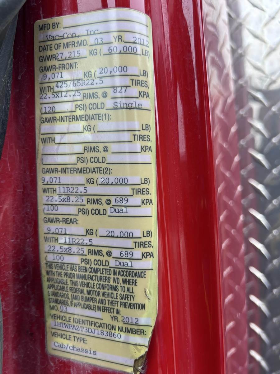 MaxxForce 570HP, 6 Cylinder Turbo Diesel Engine, Automatic Transmission, GVWR:60000LBS, 20K Front Axle, 20K Rear Axles, Engine PTO Hours Shown 440, Vac-Con Vac Body, John Deere Rear Engine, 5700 Hours Shown On Vac, Roots Rotary Lobe Blower, Heat, AC, Camera System, CD Radio, 425/65R22.5 Front Tires, 11R22.5 Rear Tires,