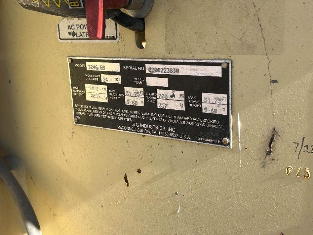 2013 JLG 3246ES SCISSORLIFT, electric, 32' lift, extendable platform, 758 hours indicated. s/n:0200223830