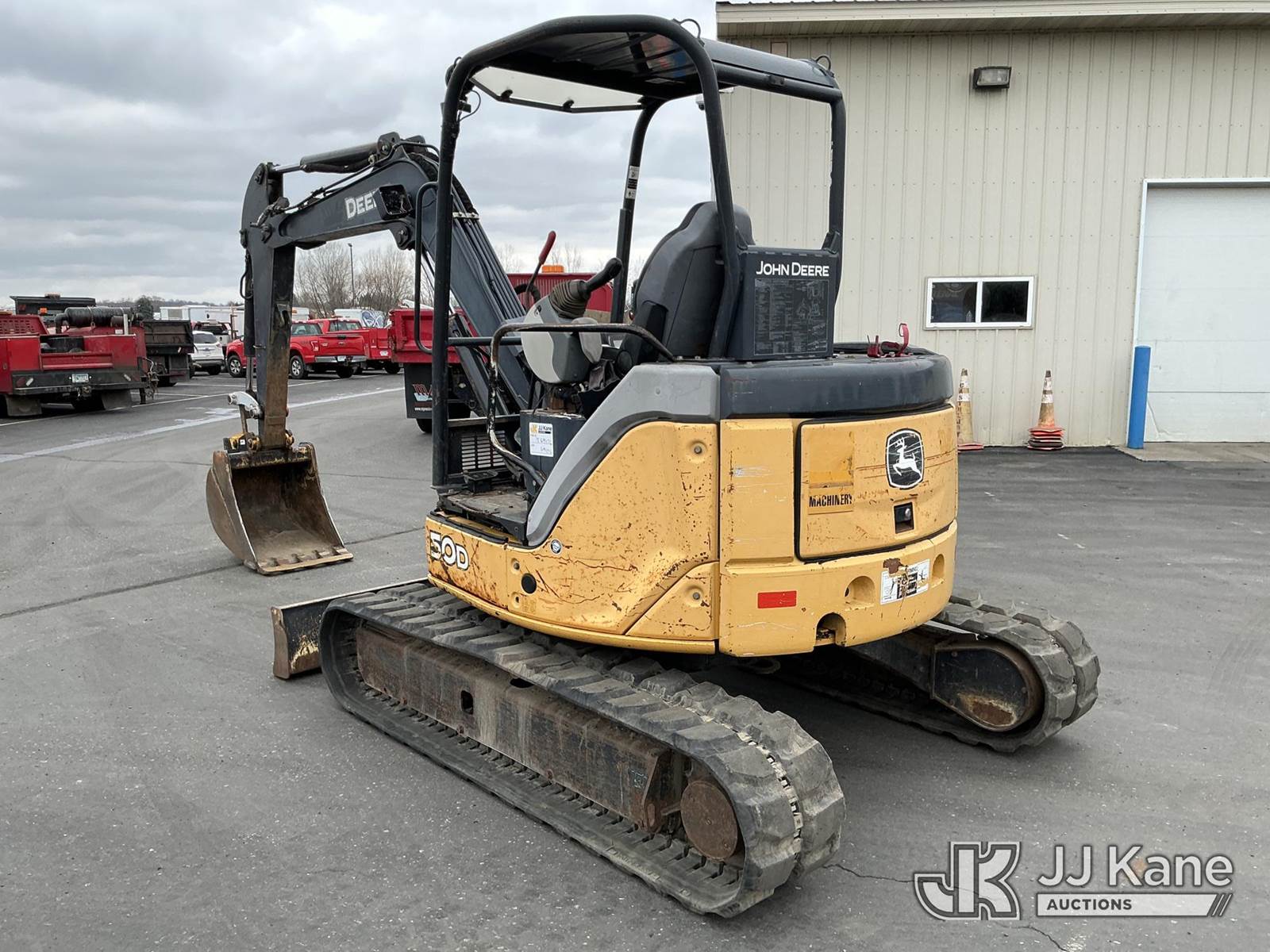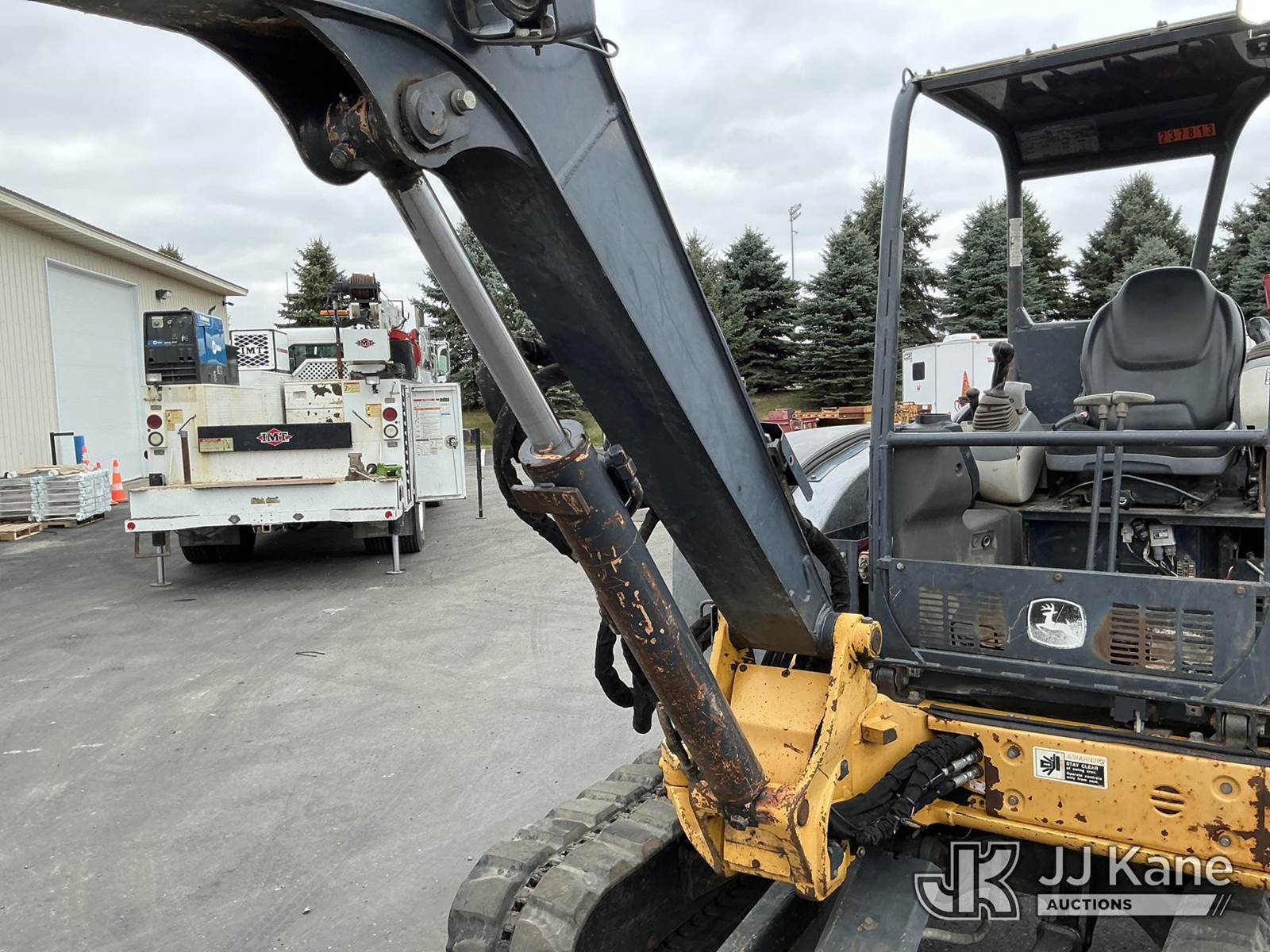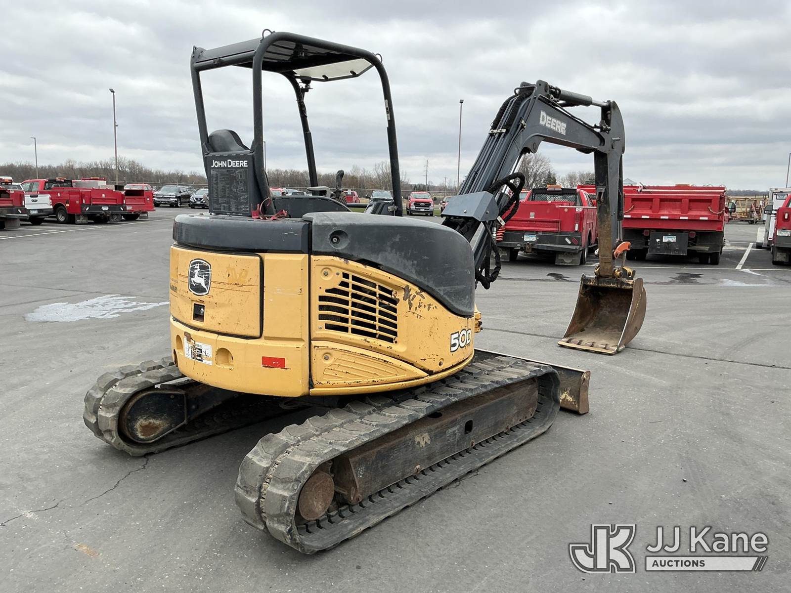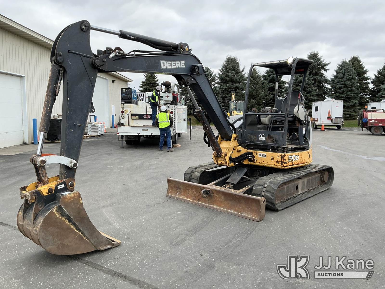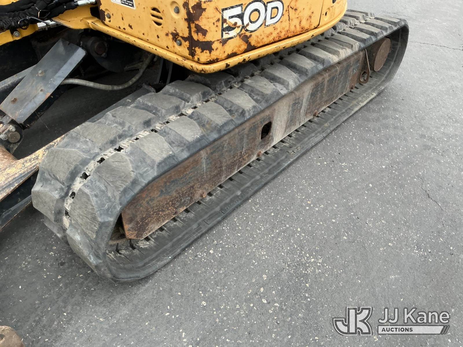 2013 John Deere 50D Mini Hydraulic Excavator, s/n 1FF050DXCTG277813, Yanmar Hydraulic Driven, Diesel, with 24in digging bucket, backfill blade, aux hydraulics, rubber tracks, ROPS, (Runs, Moves, Operates)(Engine Cover Cracked) (Reads 614 hours) NOTE: This unit is being sold AS IS/WHERE IS via Timed Auction and is located in Maple Lake, MN. For specific technical information or questions about this item, contact Ben Boucher at (612) 616-2798. For load-out and pick information, reference the hauler sheet sent out after purchase. These items are used and may contain defects that are not immediately detectable. Text descriptions and photos given are meant to be used as a guide only. The conditions are provided by the consignor. The Buyer is responsible for inspecting the item before bidding. Purchaser acknowledges ALL lots must be removed within 10 business days of the Auction, or a storage fee may be incurred. All information provided is believed to be correct but no warranty as such is either intended or implied. All items are sold AS IS - WHERE IS AND WITH ALL FAULTS AND DEFECTS THEREIN. (Buyer is responsible for removal. Assistance by consignor or JJ Kane Auctioneers is not assured.)