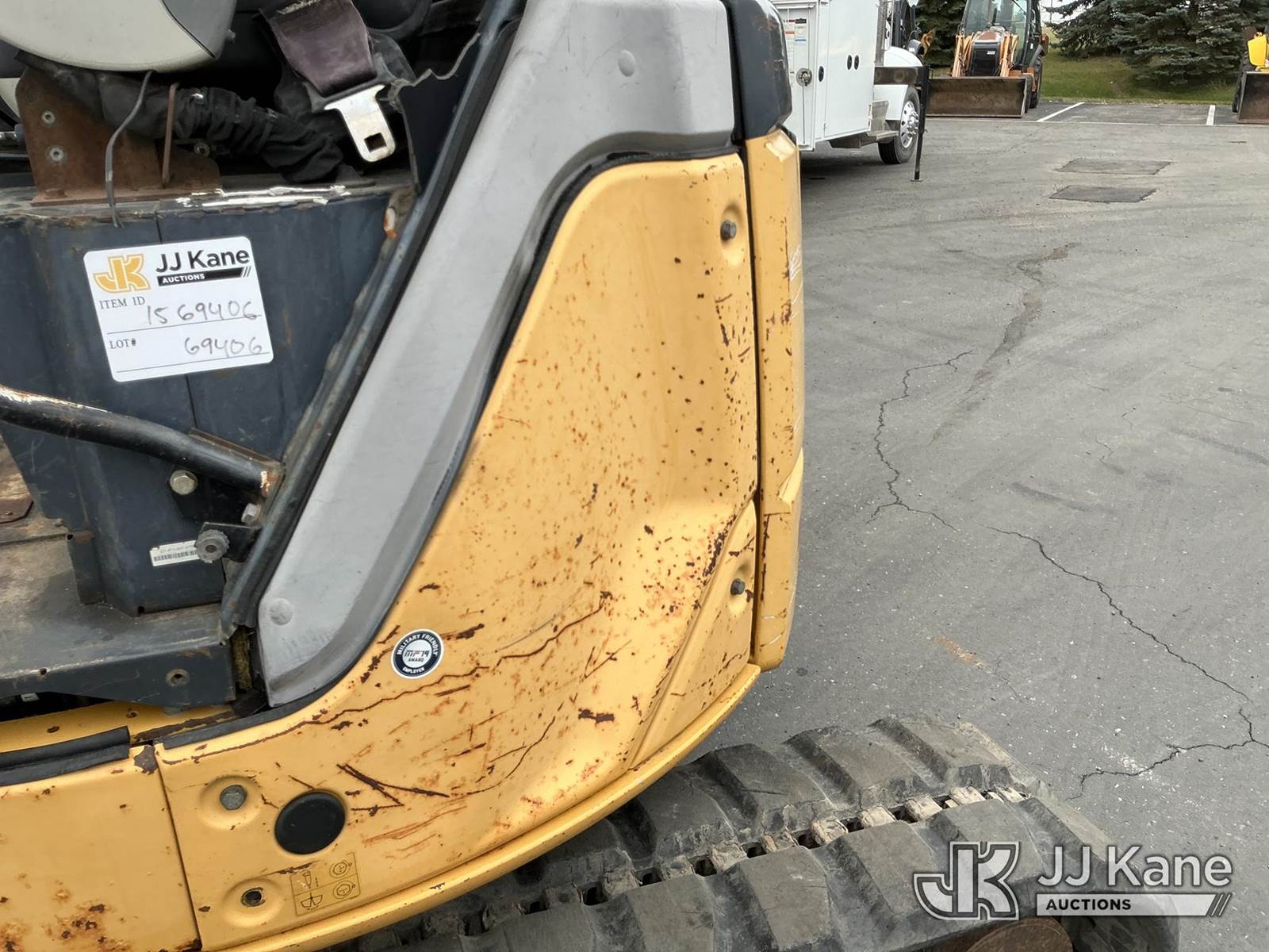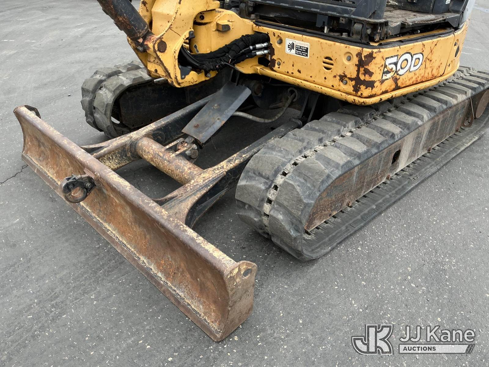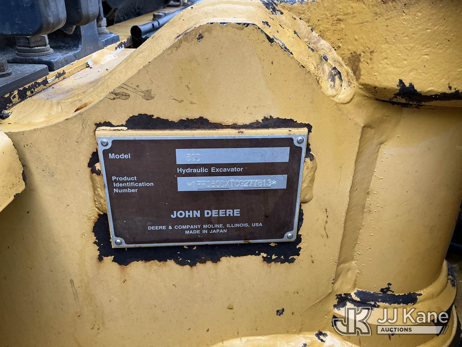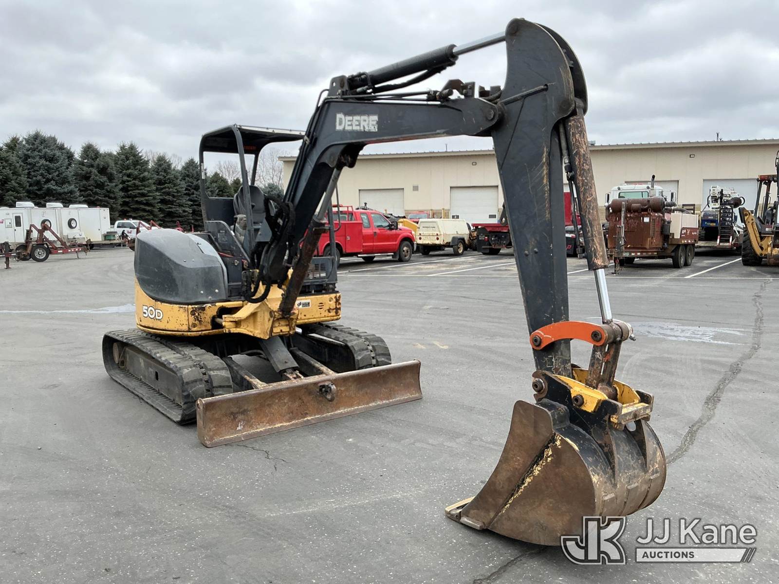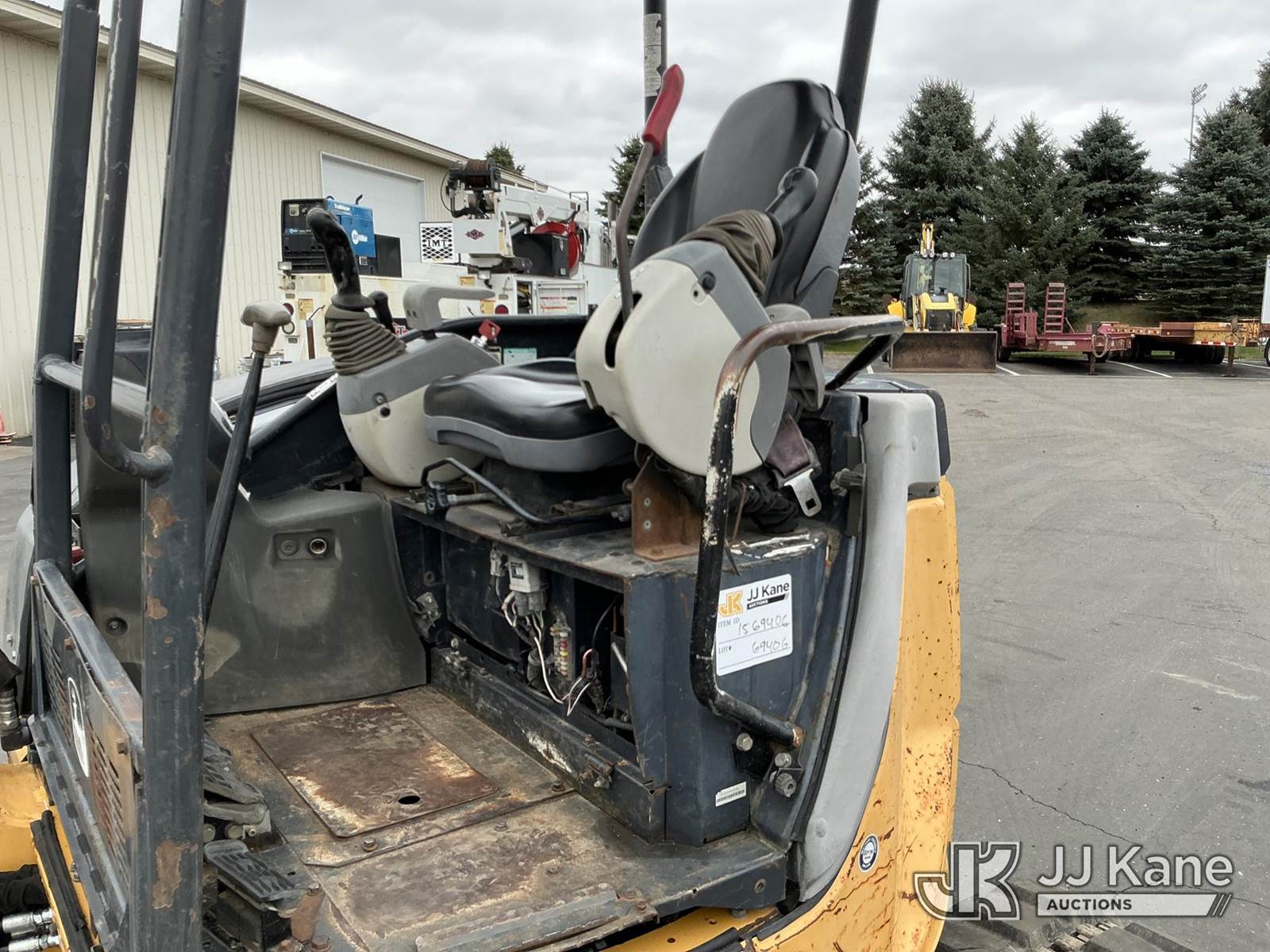 2013 John Deere 50D Mini Hydraulic Excavator, s/n 1FF050DXCTG277813, Yanmar Hydraulic Driven, Diesel, with 24in digging bucket, backfill blade, aux hydraulics, rubber tracks, ROPS, (Runs, Moves, Operates)(Engine Cover Cracked) (Reads 614 hours) NOTE: This unit is being sold AS IS/WHERE IS via Timed Auction and is located in Maple Lake, MN. For specific technical information or questions about this item, contact Ben Boucher at (612) 616-2798. For load-out and pick information, reference the hauler sheet sent out after purchase. These items are used and may contain defects that are not immediately detectable. Text descriptions and photos given are meant to be used as a guide only. The conditions are provided by the consignor. The Buyer is responsible for inspecting the item before bidding. Purchaser acknowledges ALL lots must be removed within 10 business days of the Auction, or a storage fee may be incurred. All information provided is believed to be correct but no warranty as such is either intended or implied. All items are sold AS IS - WHERE IS AND WITH ALL FAULTS AND DEFECTS THEREIN. (Buyer is responsible for removal. Assistance by consignor or JJ Kane Auctioneers is not assured.)