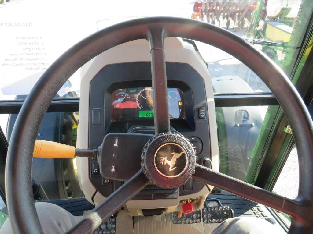 2013 JD 6140 D Tractor, 6,678 Hrs, MFD, Fenders, 3 SCV, 3pt, LED Lights, Firestone 14.9-24 Front Tires, Firestone 18.4R.38 Rear Tires, Nice Tractor, Mostly Pto Hours. Very Sharp!!