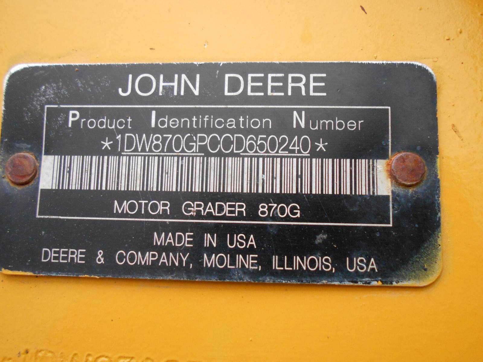 2013 John Deere 870G Motor Grader