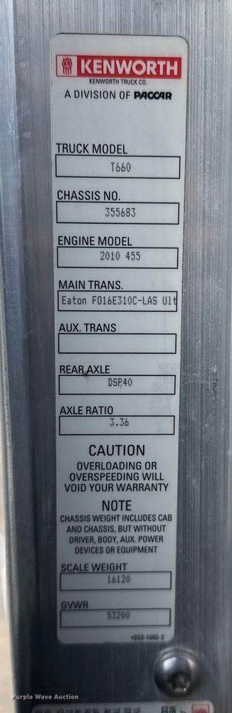 2013 Kenworth T660 box truck