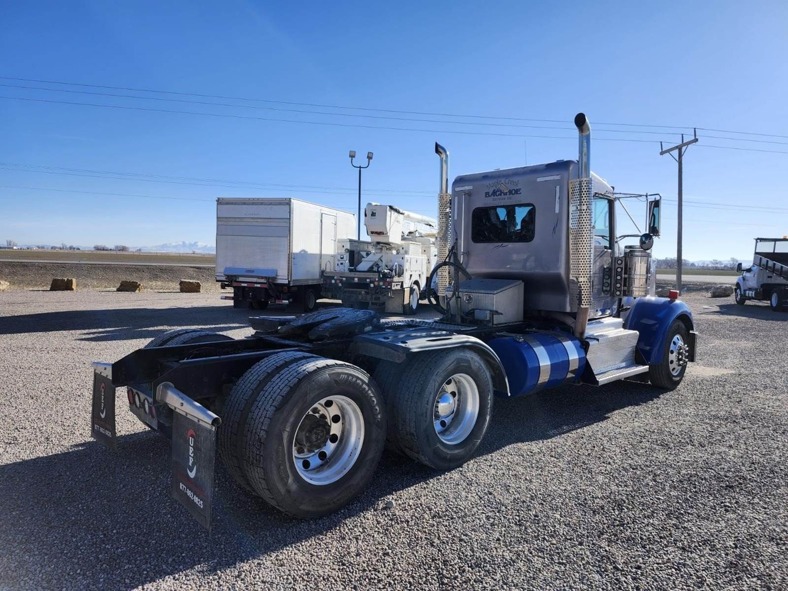 2 line wet kit, 13,500 steerable lift axle with 9' spread, Sliding 5th wheel, 13,220 FA- 46K RA, 3 way lockers, 166" Cab/trunnion, Aluminum...