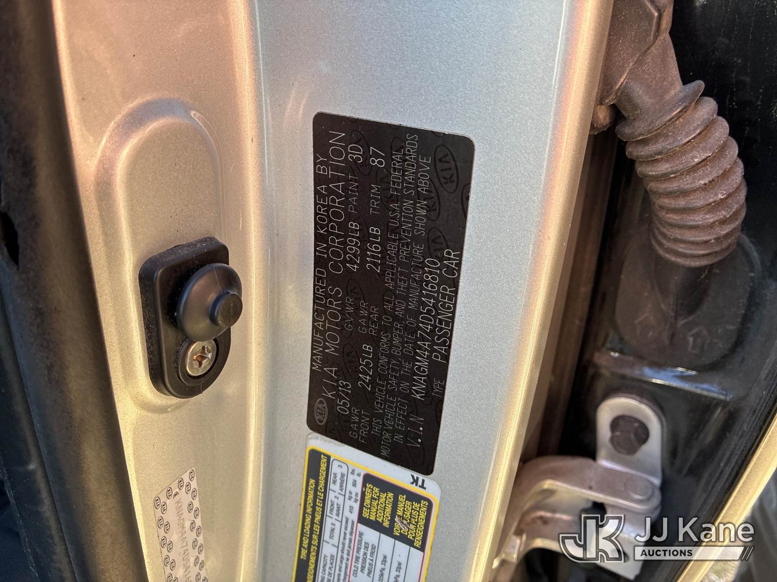 2013 Kia Optima 4-Door Sedan, 2.4L L4 DOHC 16V Gas, FWD, Auto, A/C, (122,741 miles) (Runs & Moves)(Paint Damage)(FL Residents Purchasing Titled Items – tax, title & registration fees will be collected at the maximum rate of $400.00 under 25,999 and $800.00 for Over 26,000 and $250.00 trailers – Proof of insurance is mandatory; Out of State Residents Purchasing Title Items – tax will be collected based upon your state rate.) This is a Titled Item NOTE: This unit is being sold AS IS/WHERE IS via Timed Auction and is located in Thonotosassa, FL. Inspection & preview days for this unit are the 2 business days prior to the first day of items closing for this auction, item is located at 11720 N US 301 Thonotosassa, Fl 33592 and hours of operations are 8a-4p. For pre-sale questions, please contact Office Staff @ (813) 986-2485. (Buyer is responsible for removal. Assistance by consignor or JJ Kane Auctions is not assured.)