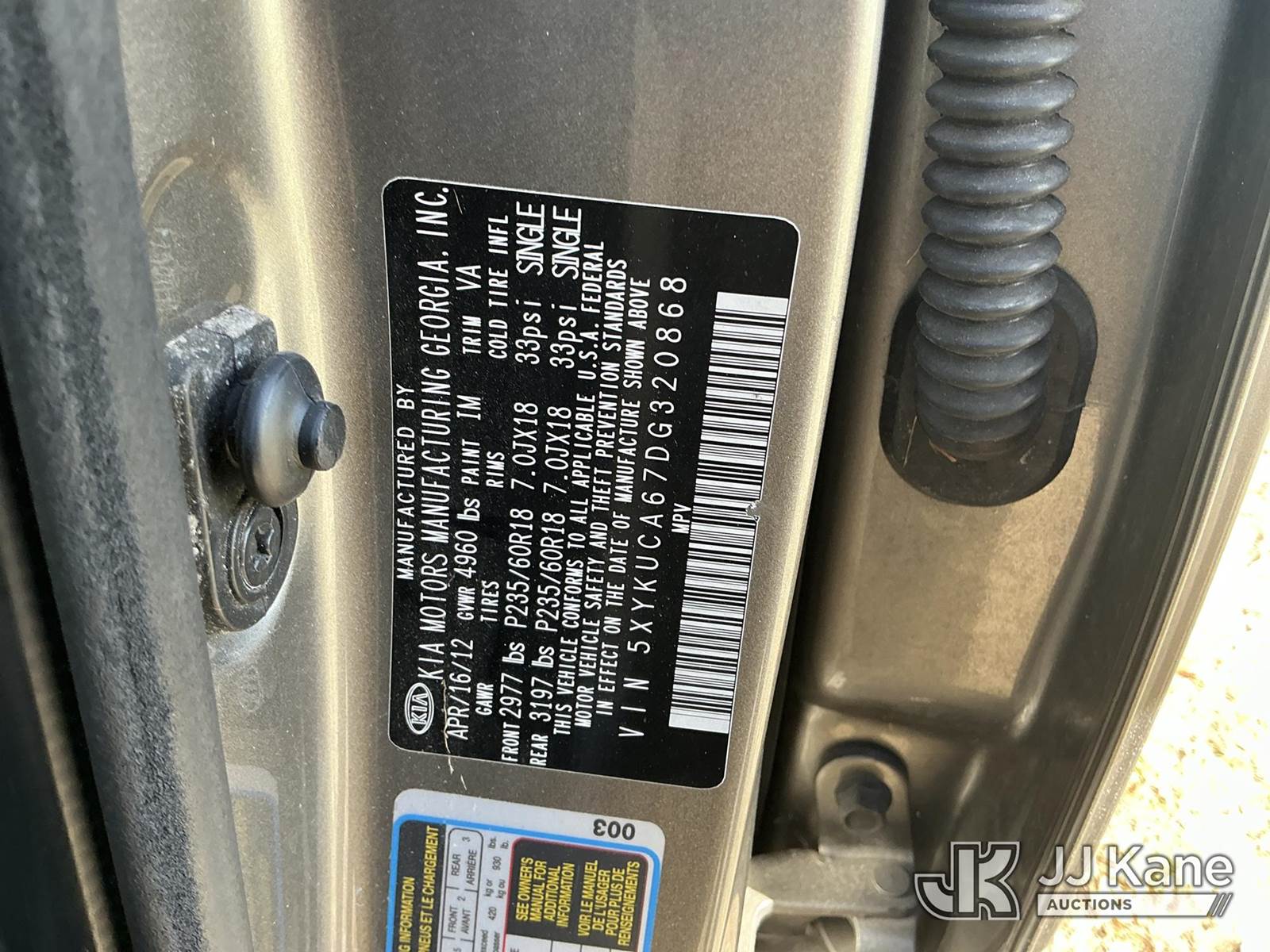 2013 Kia Sorento EX 4-Door Sport Utility Vehicle, 2.4L L4 DOHC 16V gas, AWD, 6-Speed Automatic, A/C, (169,940 miles) (Runs & Moves) (FL Residents Purchasing Titled Items – tax, title & registration fees will be collected at the maximum rate of $400.00 under 25,999 and $800.00 for Over 26,000 and $250.00 trailers – Proof of insurance is mandatory; Out of State Residents Purchasing Title Items – tax will be collected based upon your state rate.) This is a Titled Item NOTE: This unit is being sold AS IS/WHERE IS via Timed Auction and is located in Thonotosassa, FL. Inspection & preview days for this unit are the 2 business days prior to the first day of items closing for this auction, item is located at 11720 N US 301 Thonotosassa, Fl 33592 and hours of operations are 8a-4p. For pre-sale questions, please contact Office Staff @ (813) 986-2485. (Buyer is responsible for removal. Assistance by consignor or JJ Kane Auctions is not assured.)