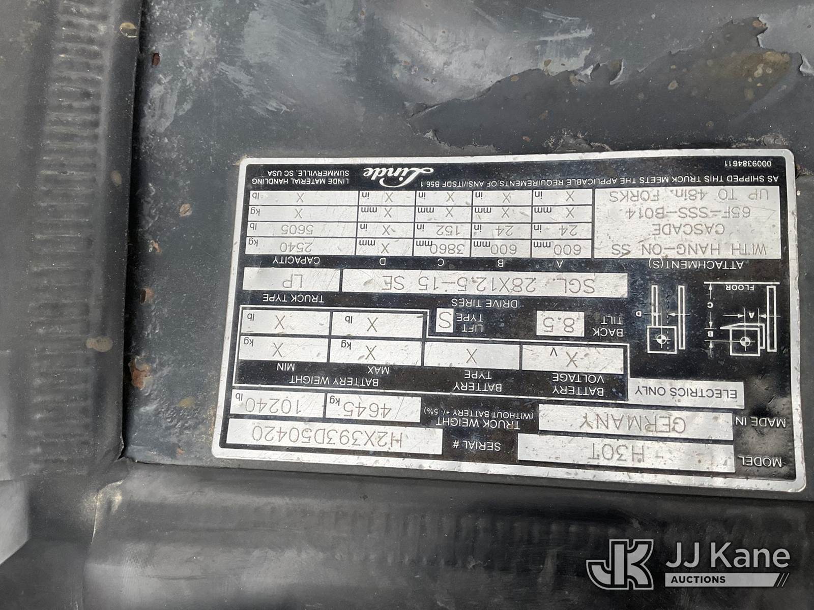 2013 Linde H30T Solid Tired Forklift, s/n H2X393D50420, LPG, Shuttle, with 5,600 lb. capacity, 3-stage mast, side shift, Fork Length: 3 ft 6 inch, (Not Running, Condition Unknown, Check Engine Light On, Battery Light On) (Reads 3,859 hours) NOTE: This unit is being sold AS IS/WHERE IS via Timed Auction and is located in Marion, TX. Inspection & preview days for this unit are the 2 business days prior to the first day of items closing for this auction, item is located at 3292 S Santa Clara Rd Marion, TX 78124 and hours of operations are 8a-4p. For pre-sale questions, please contact Brian Jarrell @ 210-540-3147. (Buyer is responsible for removal. Assistance by consignor or JJ Kane Auctions is not assured.)