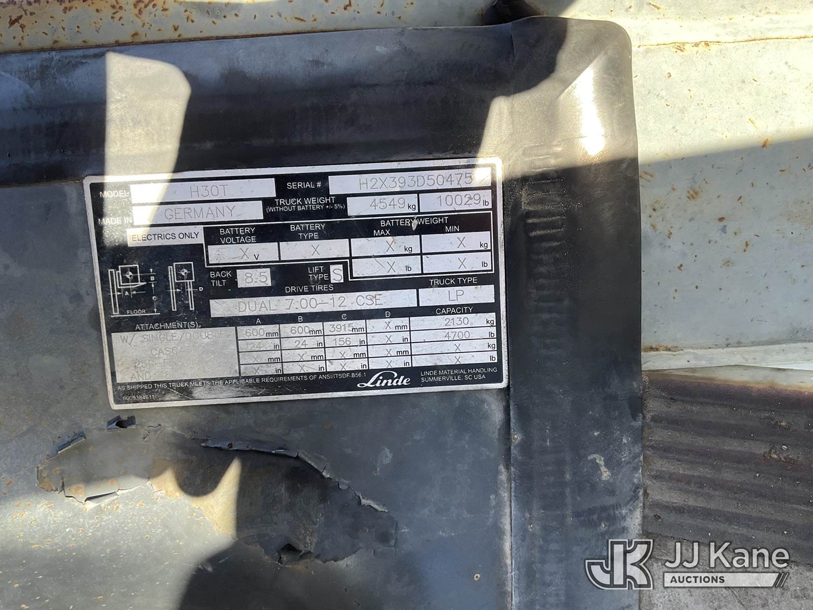 2013 Lindsey H30T Solid Tired Forklift, s/n H2X393D50475, 4-cyl, LPG, Shuttle, with 4700lbs capacity, 156in fork height, (Not Running, Condition Unknown) NOTE: This unit is being sold AS IS/WHERE IS via Timed Auction and is located in Marion, TX. Inspection & preview days for this unit are the 2 business days prior to the first day of items closing for this auction, item is located at 3292 S Santa Clara Rd Marion, TX 78124 and hours of operations are 8a-4p. For pre-sale questions, please contact Brian Jarrell @ 210-540-3147. (Buyer is responsible for removal. Assistance by consignor or JJ Kane Auctions is not assured.)