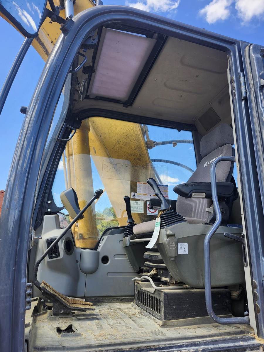 (Breaker is NOT included in price!) Enclosed Cab w/ Heat, A/C & AM/FM Radio! Cummins QSB6.7 Diesel Tier 3 Engine, 178.3 hp (133 kW) @ 2,000 RPM, Operating Weight: 55,115lbs, Standard Track pads: 32 in. (800mm.), Standard length arm: 9ft. 10 in. (2.962m), 50 in. wide 1.55 cu. yd. H.D. bucket., Heavy lift hydraulic circuit and power boost digging circuit, Control pattern changer. 2 way aux. hyd. Attachment piped for 2 way aux. hyd. circuit. Two speed propel circuit w/ 90Db travel alarm. Suspension seat. Pilot Controls, 3 in. seat belts and Rotating Beacon. H.D. Counterweight. Air filter/Pre-cleaner. Two outside and one outside rear view mirror. High ambient engine cooling package. Operation manual, parts book and one key. Bucket Capacity: 0.8-1.4 m³, Travel Speed: High: 5.3 km/h Low: 3.1 km/h, Bucket Breakout Force, max, ISO: 160 kN