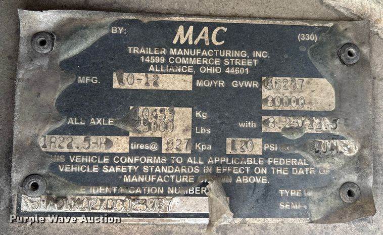 2013 Mac end dump trailer