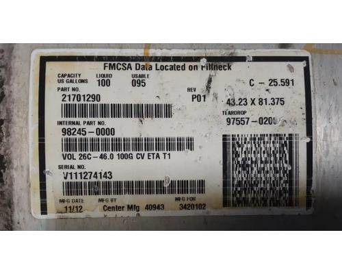 Driver Side LH Fuel Tank, 43"L x 26"Dia, 100 Gallon Capacity, Center Fill. Tank Only. P/N 21701290