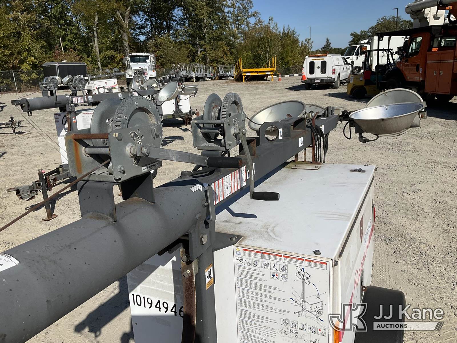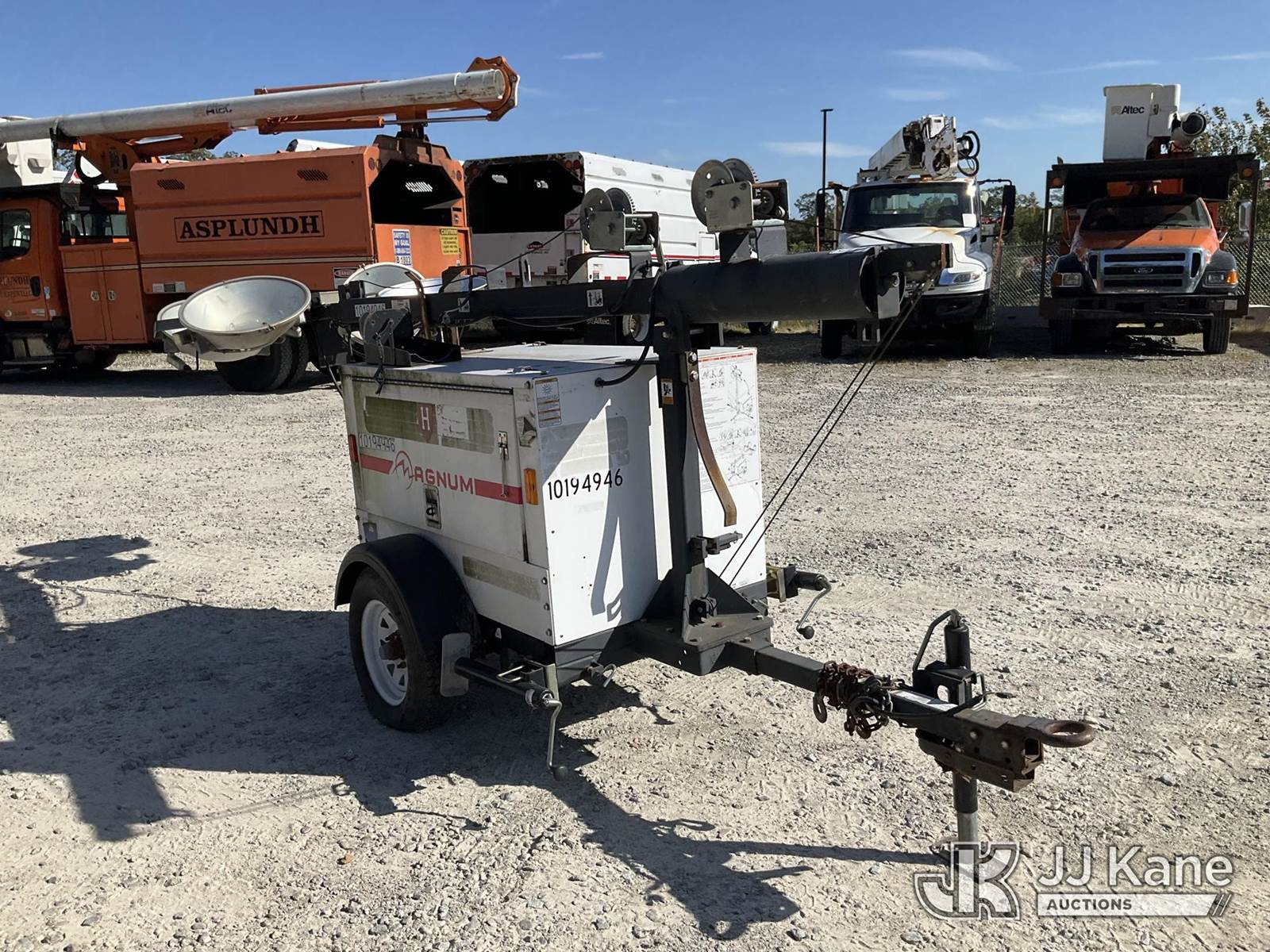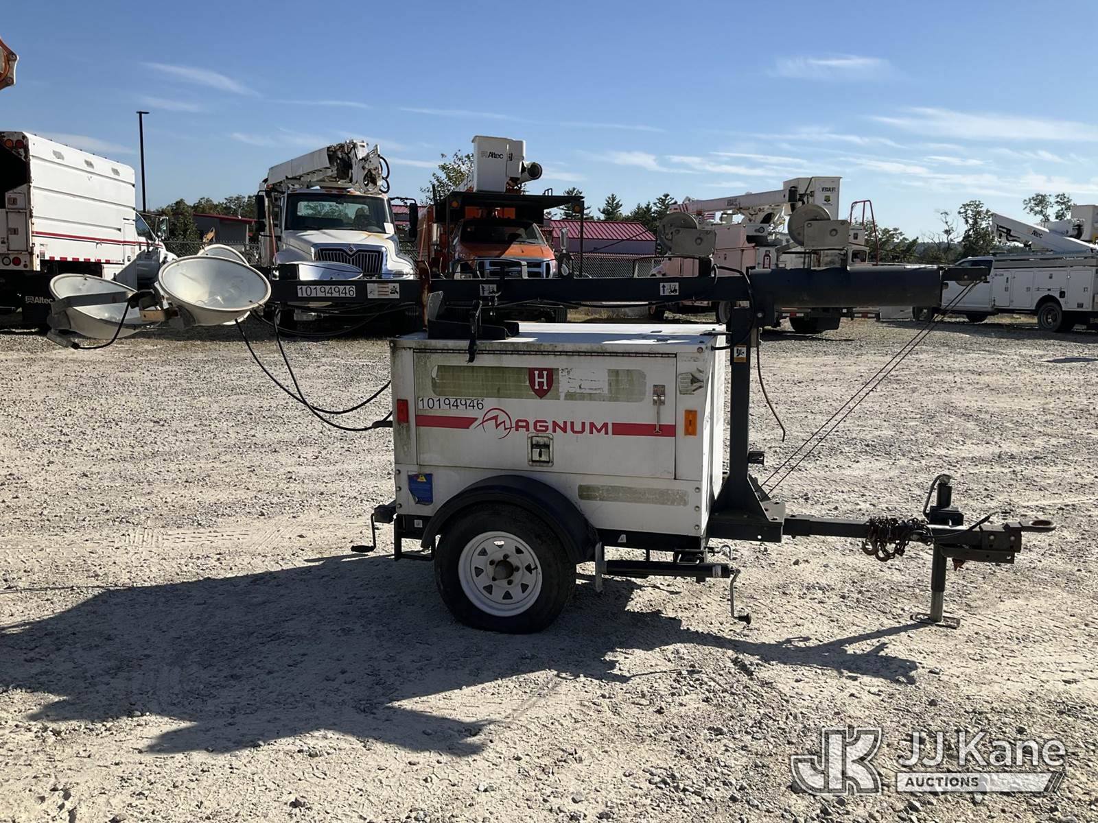 2013 Magnum Products MTL3060M Portable Light Tower, s/n 5AJLS1411DB309549, Mitsubishi diesel, trailer mtd (No Title) (Condition Unknown, No Crank) (Reads 9,717 hours) NOTE: This unit is being sold AS IS/WHERE IS via Timed Auction and is located in Shrewsbury, MA. Inspection & preview days for this unit are the 2 business days prior to the first day of items closing for this auction, item is located at 11 Fortune Blvd Shrewsbury, MA 01545 and hours of operations are 8a-4p. For pre-sale questions, please contact Rob Gifford @ (508) 864-4126. (Buyer is responsible for removal. Assistance by consignor or JJ Kane Auctioneers is not assured.)
