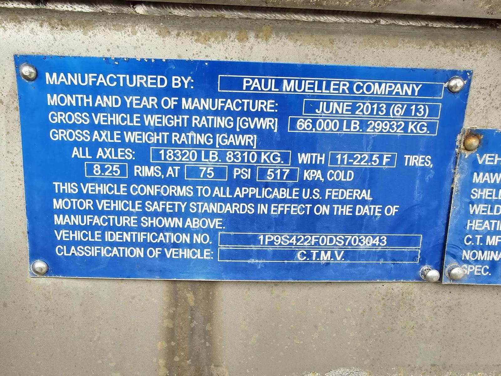2013 Mueller FOOD GRADE Trailer