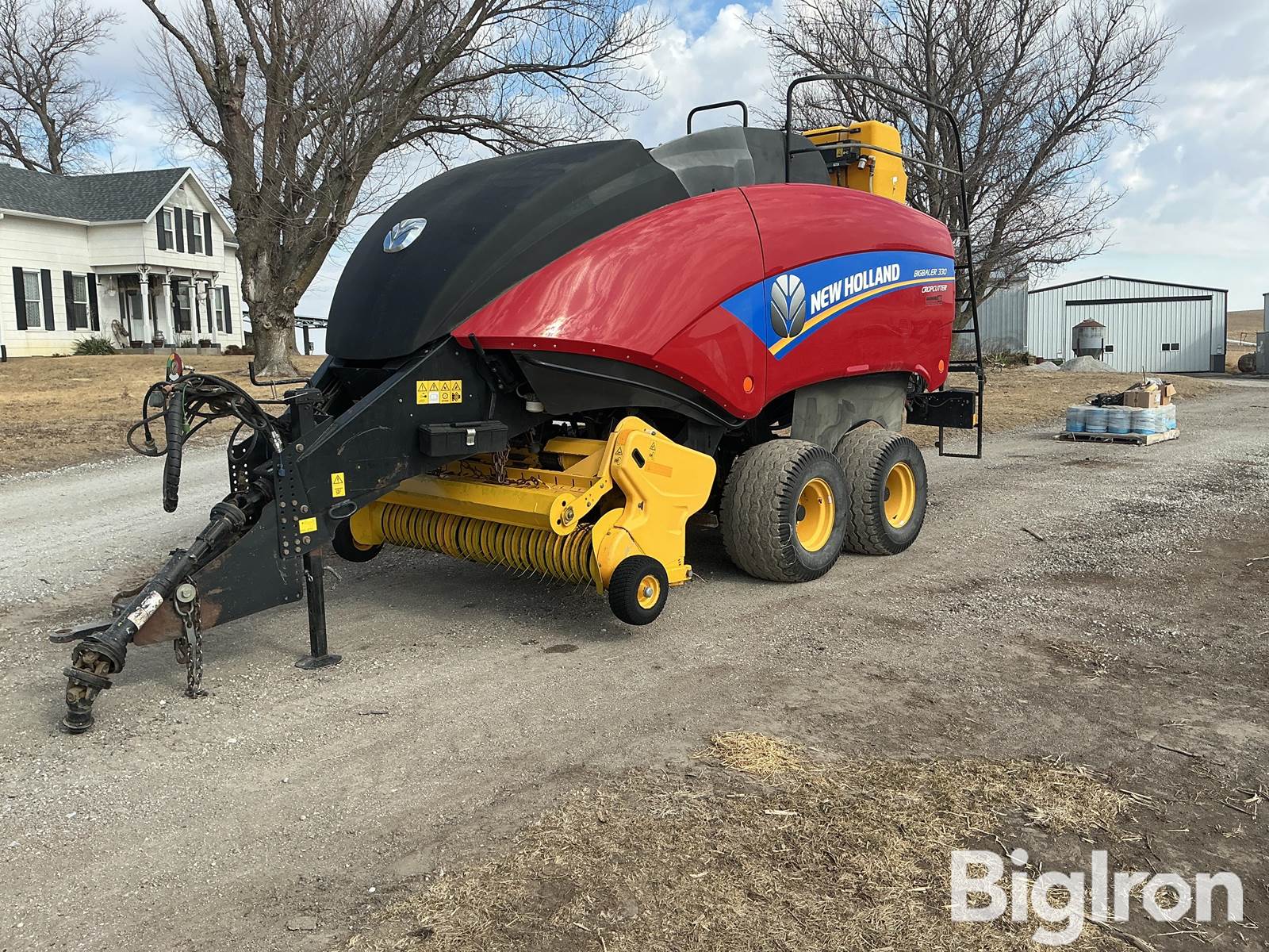 2013 New Holland 330 Big Baler w/Cropcutter 3x3 Large Square Baler, 20,500 Bale Count, 1000 PTO, steerable rear axle (can be locked straight for road transport), hyd rear chute, hyd pickup lift, extra pallet of 15 balls of twine including 27 balls in baler equals 42 total extra twine balls, baler monitor & harness included, including Harvestec brand acid applicator & acid monitor, NOTE: the harness from the baler acid applicator to the applicator monitor inside tractor needs to be replaced, the current harness is there but was damaged, owners manuals included, extra crop cutter knives, 500/50-17 tires, SN: 964020004