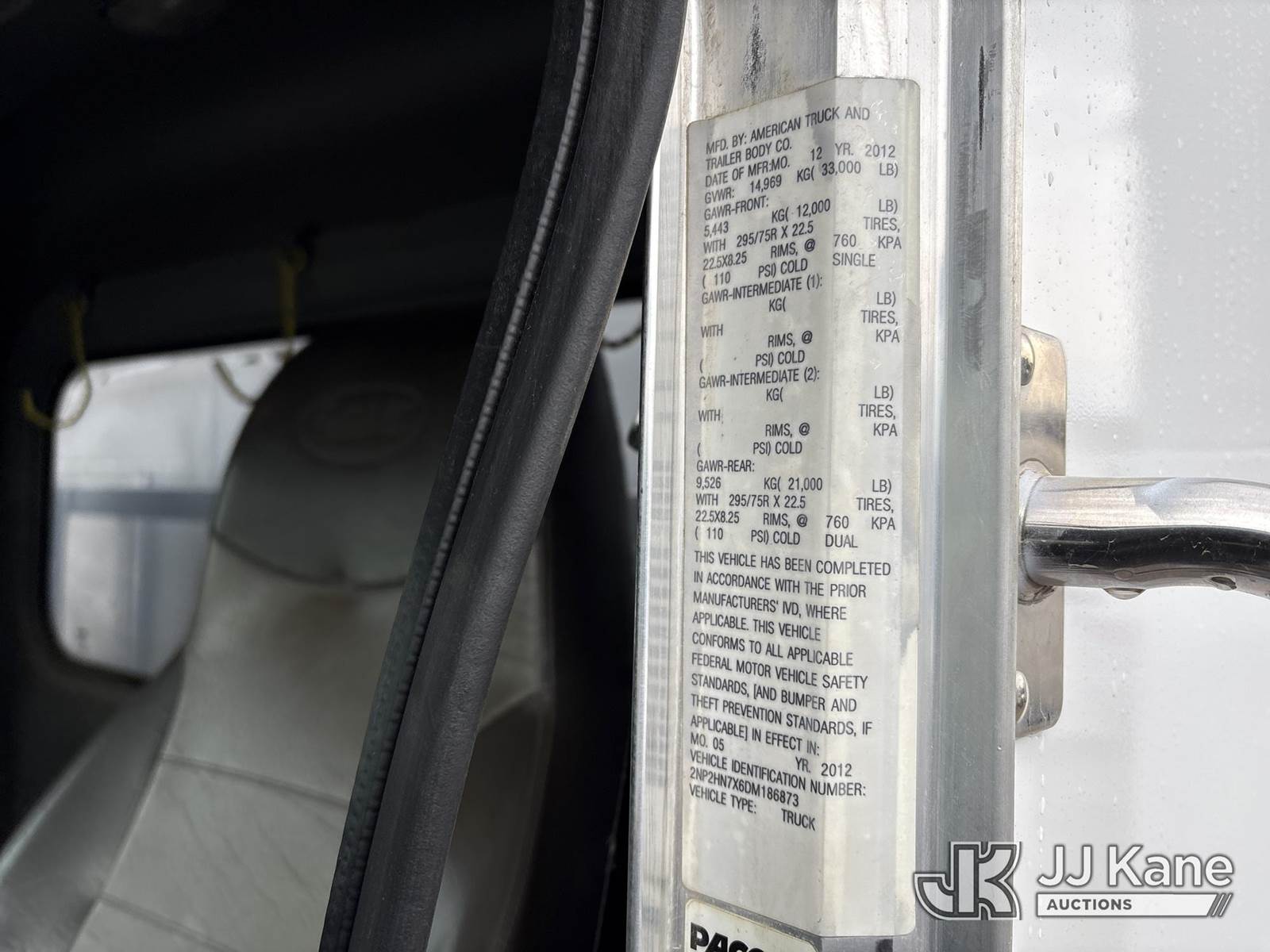 2013 Peterbilt 337 Enclosed Utility Truck, s/n 2NP2HN7X6DM186873, Paccar PX-8 DIESEL, Auto, A/C, (100,270 miles) (Runs & Moves, Rear Compartment Locked) (Reads 9,519 hours) May be subject to ARB Regulations This is a Titled Item NOTE: This unit is being sold AS IS/WHERE IS via Timed Auction and is located in Dixon, CA. Inspection & preview days for this unit are the 2 business days prior to the first day of items closing for this auction, item is located at 8668 Sparling Ln Dixon, CA 95620 and hours of operations are 8a-4p. For pre-sale questions, please contact JJ Kane Staff at (707) 678-8060 (dixon@jjkane.com). Dealer License Number 45696. (Buyer is responsible for removal. Assistance by consignor or JJ Kane Auctions is not assured.)