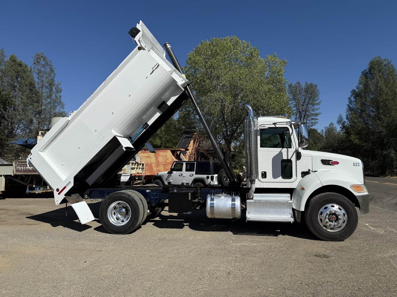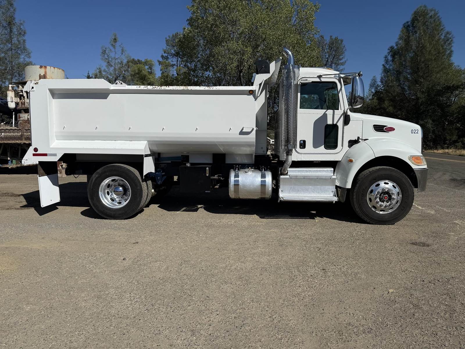 2013 Peterbilt 337 S/A Dump Truck. 340HP PX8. Engine Brake. 10 Spd Trans. Reyco Spring Susp. Diff Lock. 13'6" Dump Bed w/ Split Load Divider. Air Flaps, Air Gate. Roll Tarp.190" W/B. 12K Front, 21K rear.11R 22.5 Rubber @ 80%, Alum Wheels. CARB Compliant. 244,724 Miles. Cold A/C, C/C, P/W, P/M. $39,500