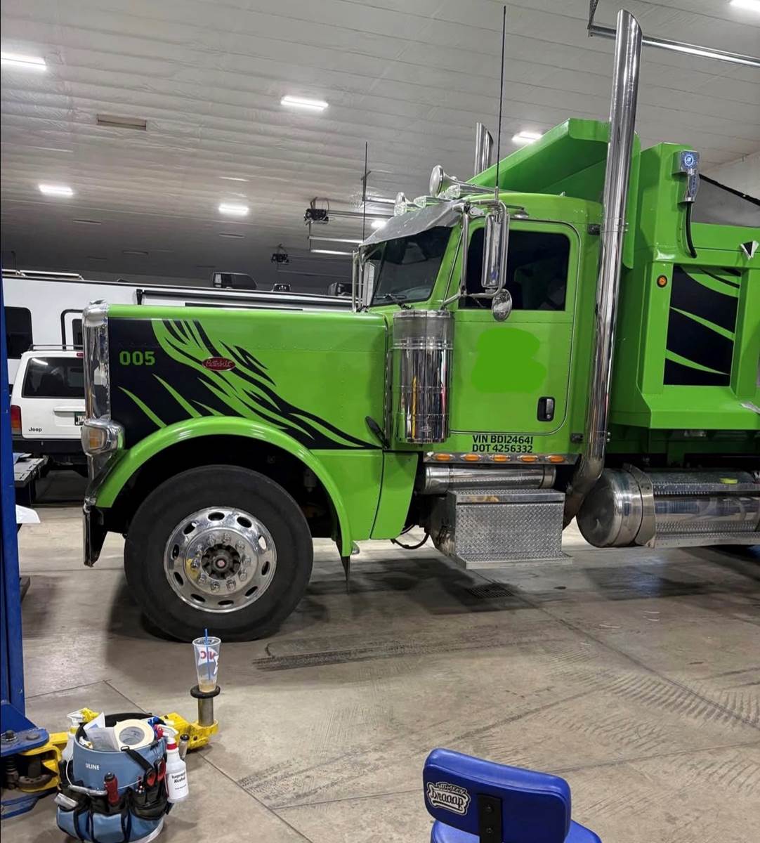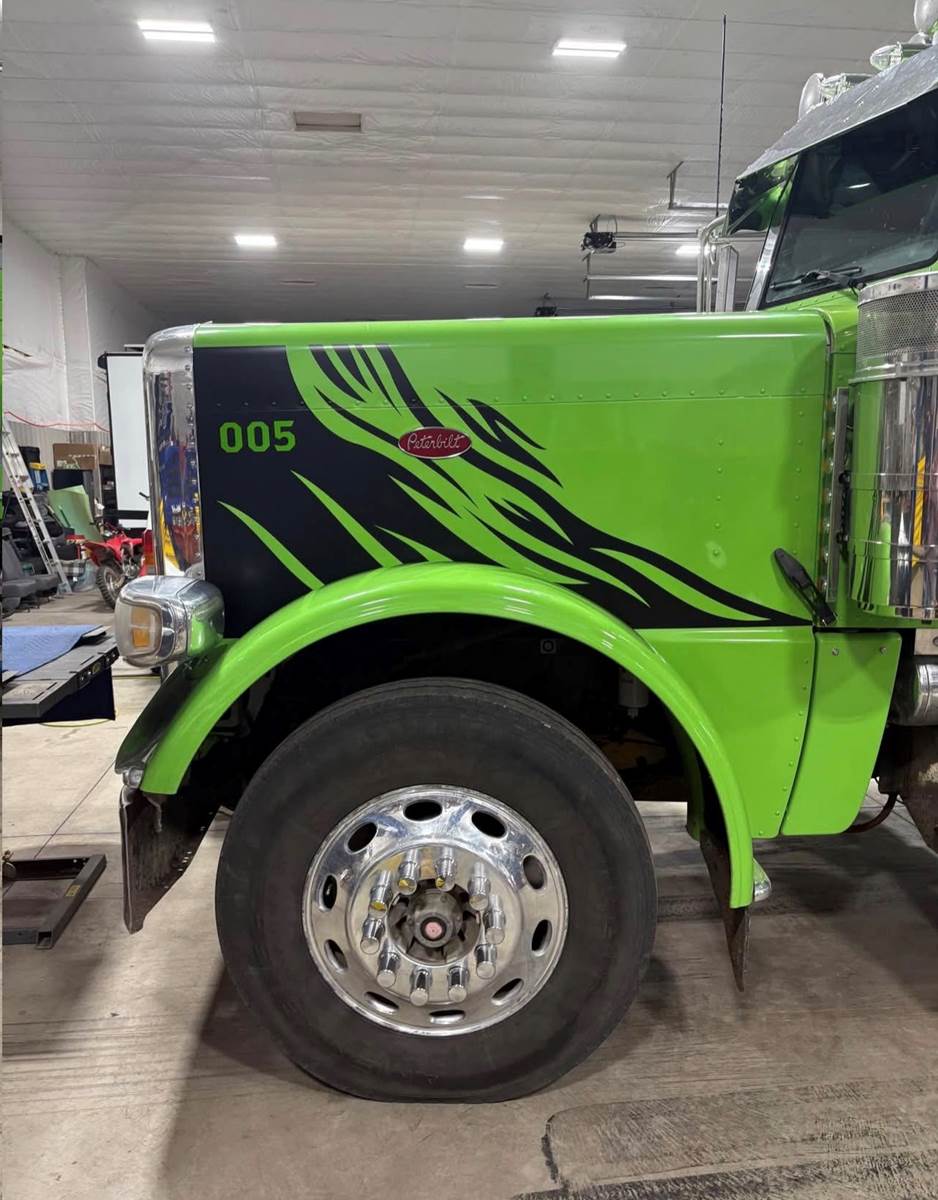 The driver seat, new cab lights, headlights, straight stacks, battery box, new window controls, sunshade, Custom painted the box to match the truck