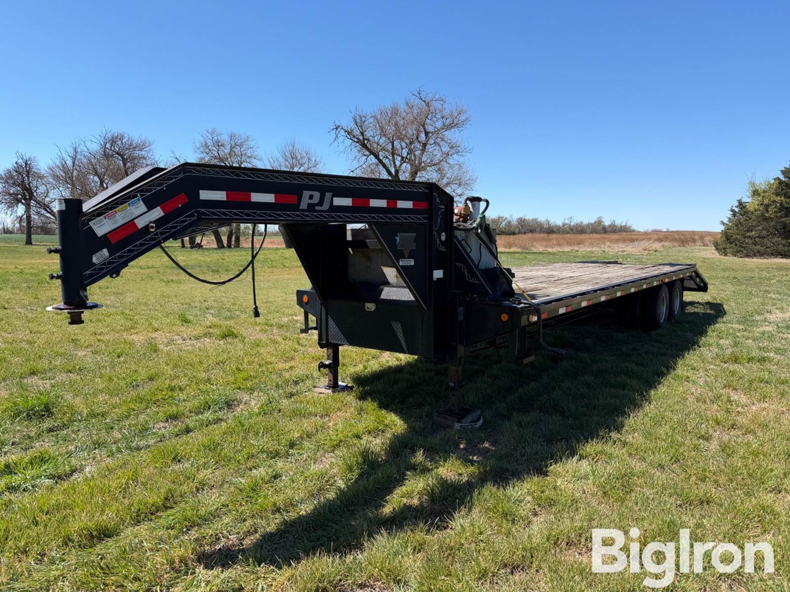 2013 Pj T/A Gooseneck Trailer, 5th Wheel Slide Hitch, Wooden Floor, Folding Ramps, Jack Stand, Diesel Tank w/ 12V Pump & Nozzle, Tank is Empty & Last Contained Diesel, Duals, Dual Rear Axles, Tire Size: 235/80R16, 8' Wide Deck, 24' 8" Long Deck, 6' Dove Tail, 5' Long Ramps, 21" Wide Ramps, 2 Ramps Installed, 1 Extra Ramp Included, VIN: 4P5FD3027D1186806