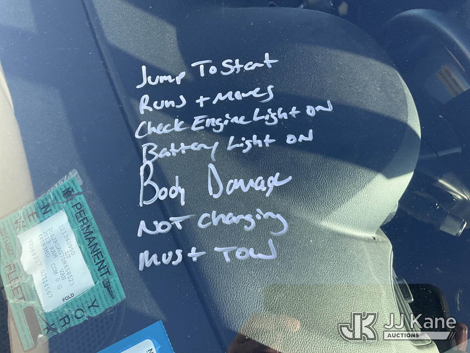 2013 RAM C/V Mini Cargo Van, 6-cyl gas, Auto, A/C, (27,104 miles) (Jump To Start, Runs & Moves, Check Engine Light On, Battery Light On, Body Damage, Not Charging, Must Tow) This is a Titled Item NOTE: This unit is being sold AS IS/WHERE IS via Timed Auction and is located in Plymouth Meeting, PA. Inspection & preview days for this unit are the 2 business days prior to the first day of items closing for this auction, item is located at 1402 Conshohocken Rd Plymouth Meeting, PA 19462 and hours of operations are 8a-4p. For pre-sale questions, please contact Bruce Thomas @ (267) 887-0392 or bruce.thomas.jr@jjkane.com. (Buyer is responsible for removal. Assistance by consignor or JJ Kane Auctions is not assured.)