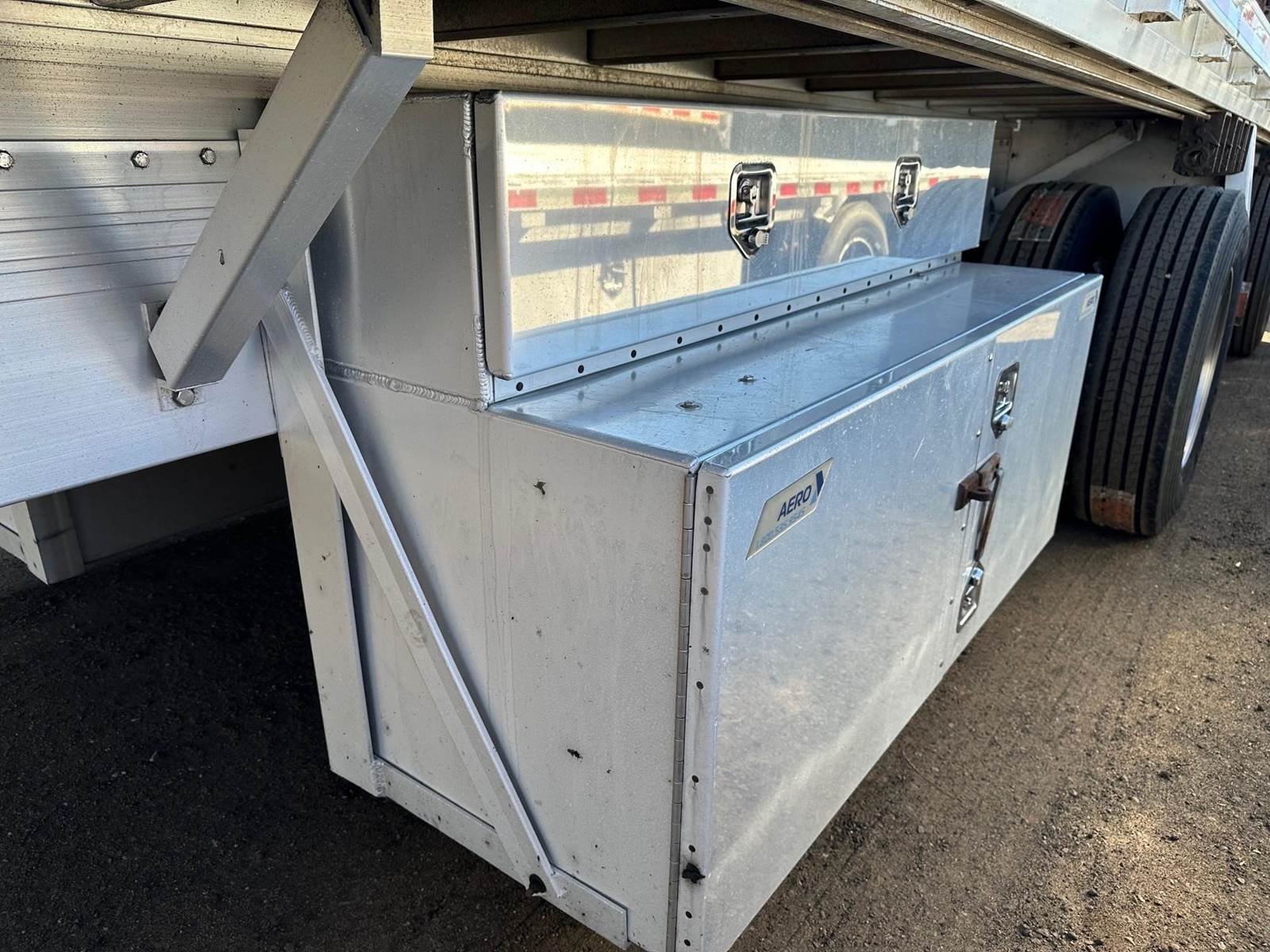 2013 Reitnouer MaxMiser All Aluminum Flatbed, 90,000 lbs GVWR, 48' x 102", Aluminum Main Beams, Deck and Rails, Coil Package, 3 Nail Strips, Stake Pockets, Double Pipe Spools, Sliding Winches, 2 Tool Box, Fixed Spread Air Ride, PSI, Outside Aluminum Wheels, New Virgin 22.5 LP Tires.