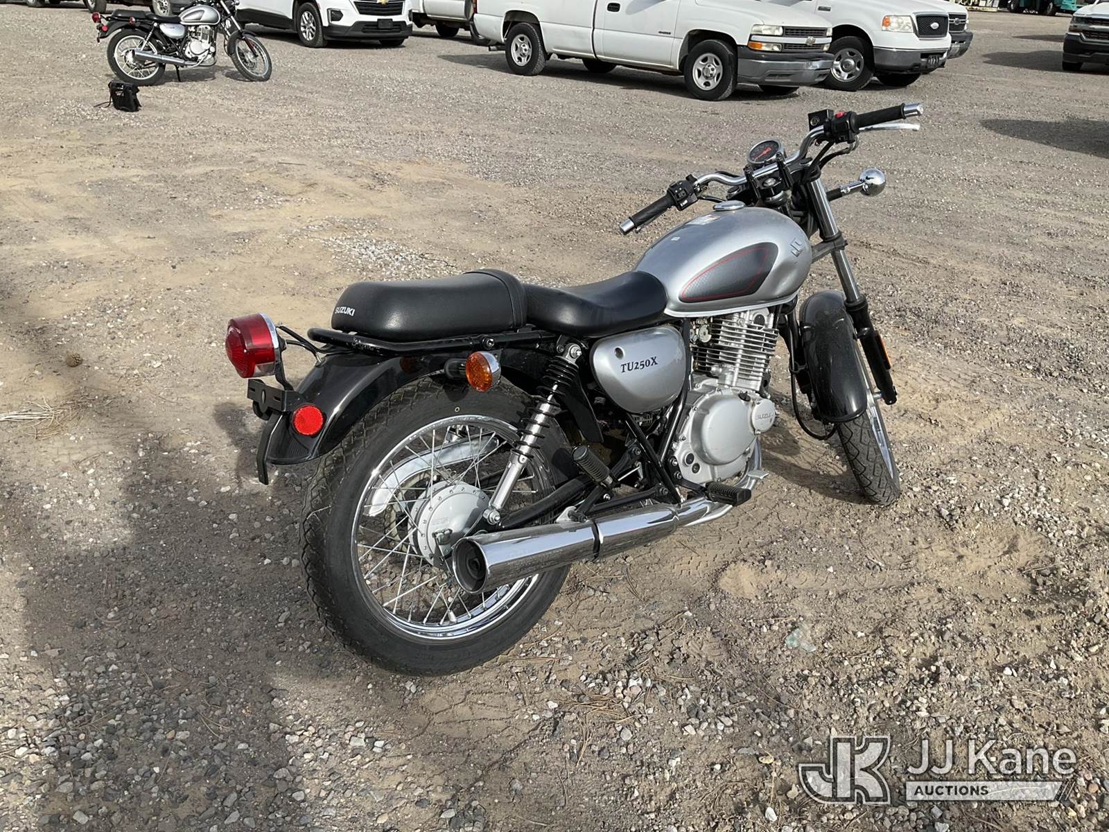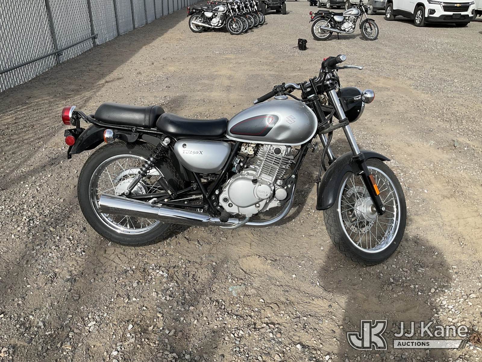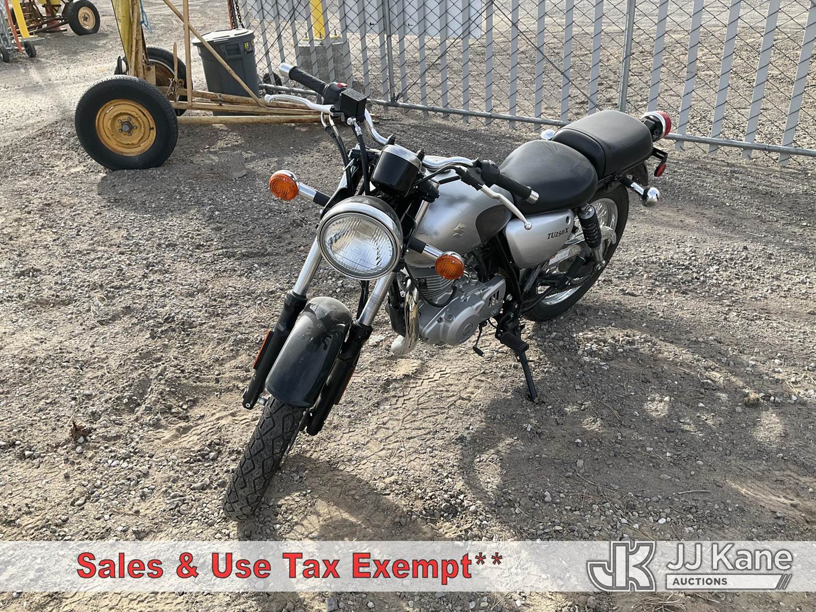 2013 Suzuki TU250X Motorcycle, 249CC Gas, Auto, (803 miles) (Runs & Moves) (Jump to Start, Minor Dents on Gas Tank) This is a Titled Item NOTE: This unit is being sold AS IS/WHERE IS via Timed Auction and is located in Sparks, NV. Inspection & preview days for this unit are the 2 business days prior to the first day of items closing for this auction, item is located at 601 Britain Dr Sparks, NV 89437 and hours of operations are 8a-4p. Titles executed exactly as bidder registered. Ensure your name and/or business name and address in JJ Kane and/or ProxiBid is correct before bidding. For pre-sale questions, please contact Office Staff @ (801) 519-0123 and provide sale date and lot number. Sparks Dealer License Number DLR000052908 / OHV000052909. (Buyer is responsible for removal. Assistance by consignor or JJ Kane Auctions is not assured.)