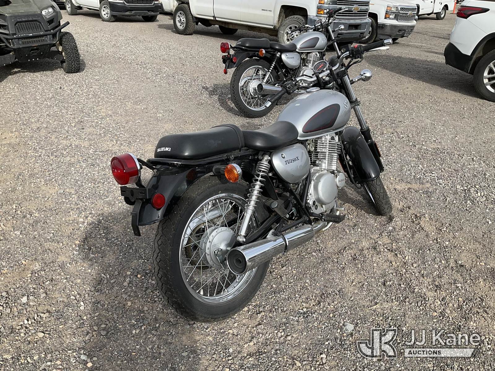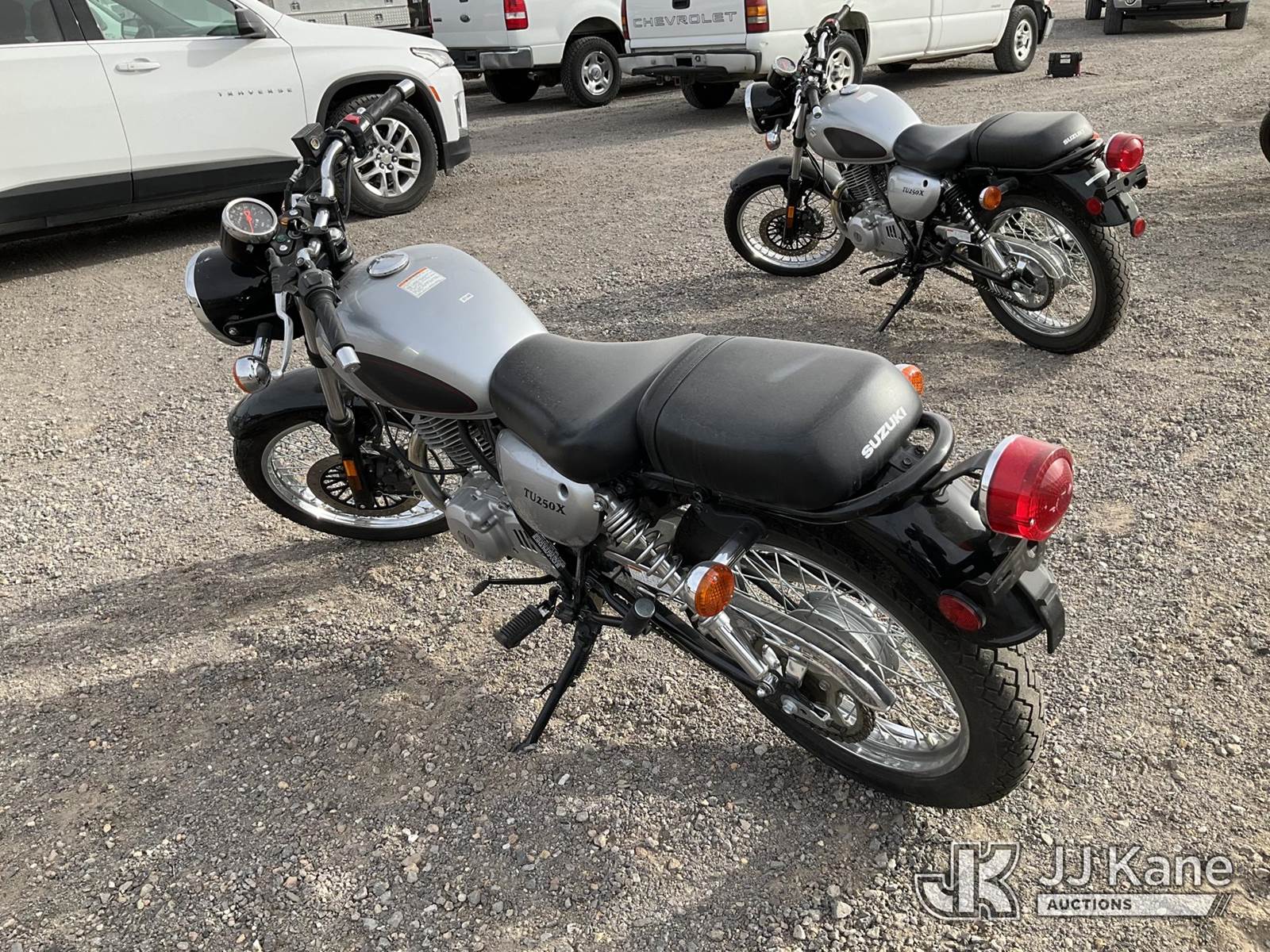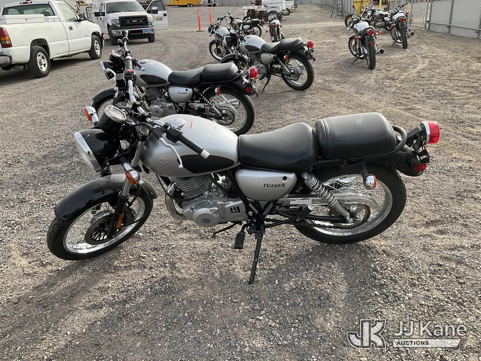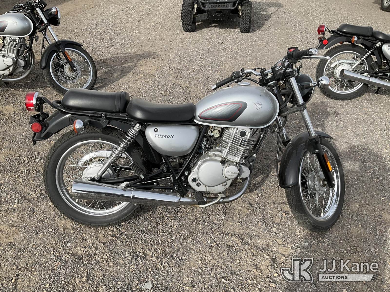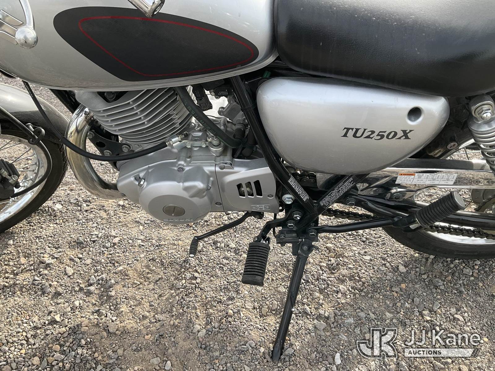 2013 Suzuki TU250X Motorcycle, 249CC Gas, Auto, (867 miles) (Runs & Moves) (Jump to Start, Minor Dents on Gas Tank) This is a Titled Item NOTE: This unit is being sold AS IS/WHERE IS via Timed Auction and is located in Sparks, NV. Inspection & preview days for this unit are the 2 business days prior to the first day of items closing for this auction, item is located at 601 Britain Dr Sparks, NV 89437 and hours of operations are 8a-4p. Titles executed exactly as bidder registered. Ensure your name and/or business name and address in JJ Kane and/or ProxiBid is correct before bidding. For pre-sale questions, please contact Office Staff @ (801) 519-0123 and provide sale date and lot number. Sparks Dealer License Number DLR000052908 / OHV000052909. (Buyer is responsible for removal. Assistance by consignor or JJ Kane Auctions is not assured.)
