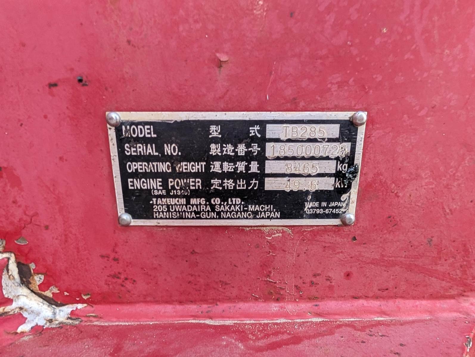 2013 Takeuchi TB285 Excavator